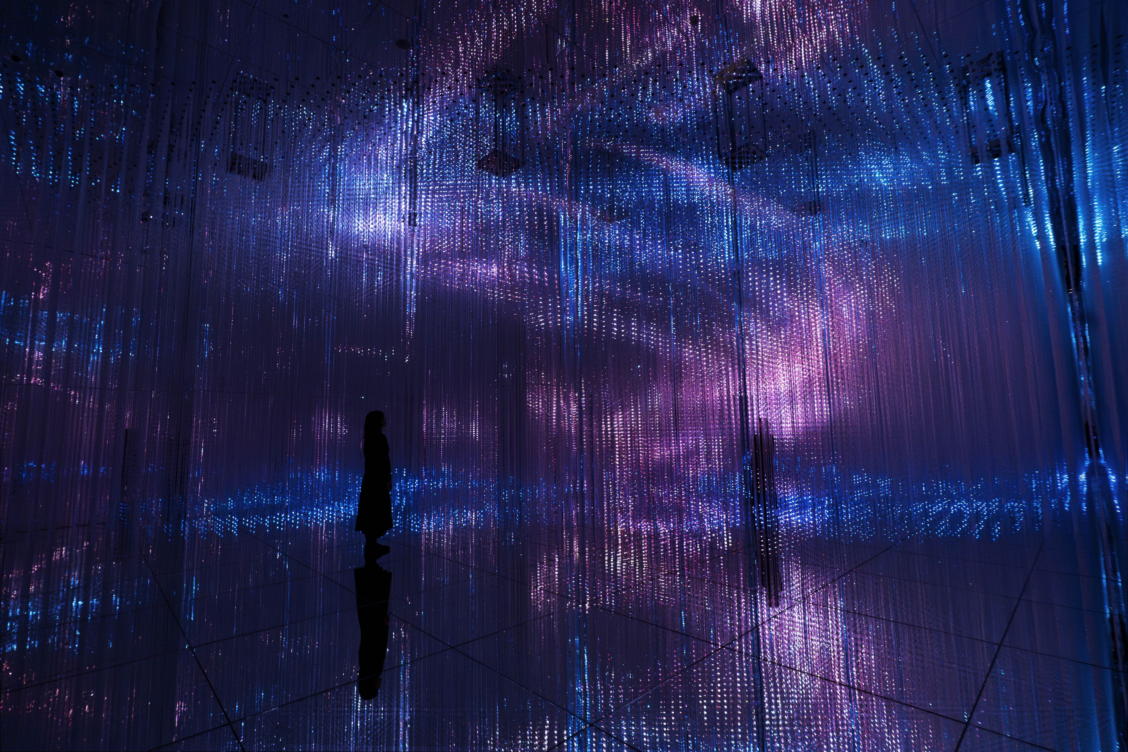 People use their smartphones to select elements to throw into the Infinite Crystal World. These elements are reborn in three dimensions, creating the artwork. The presence of people and their location within the work affect these three-dimensional elements, which in turn influence and are influenced by other elements in the space.