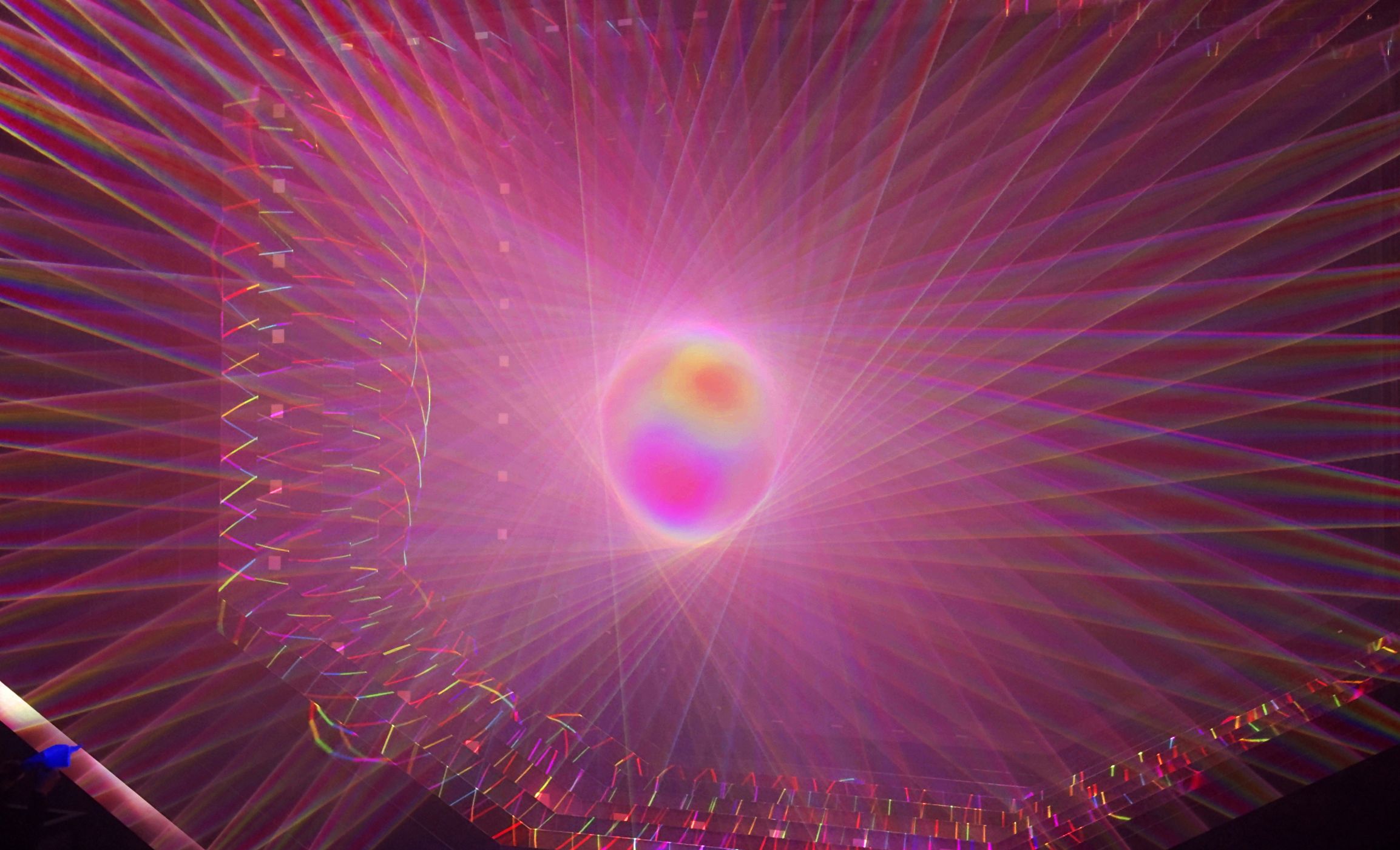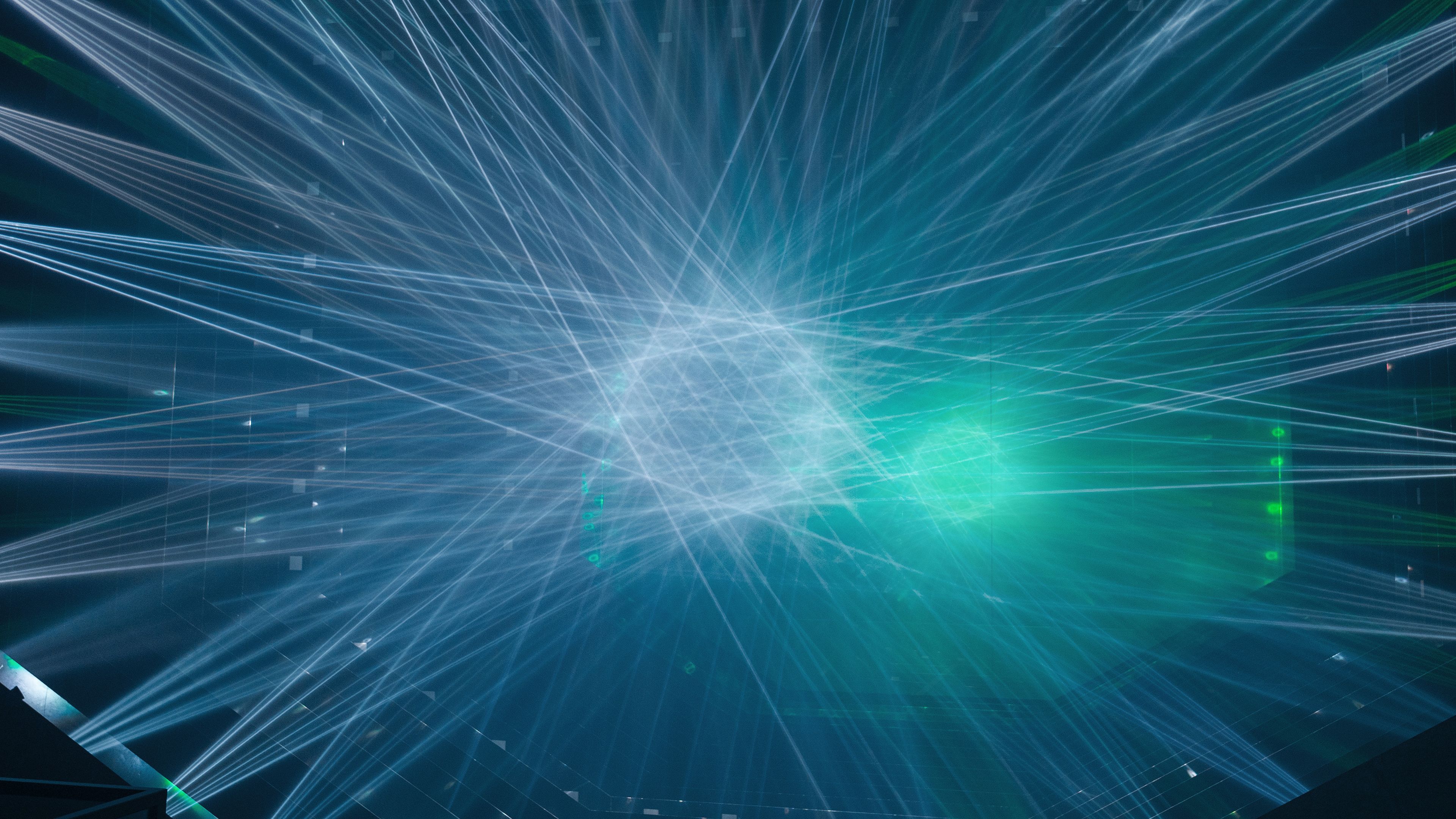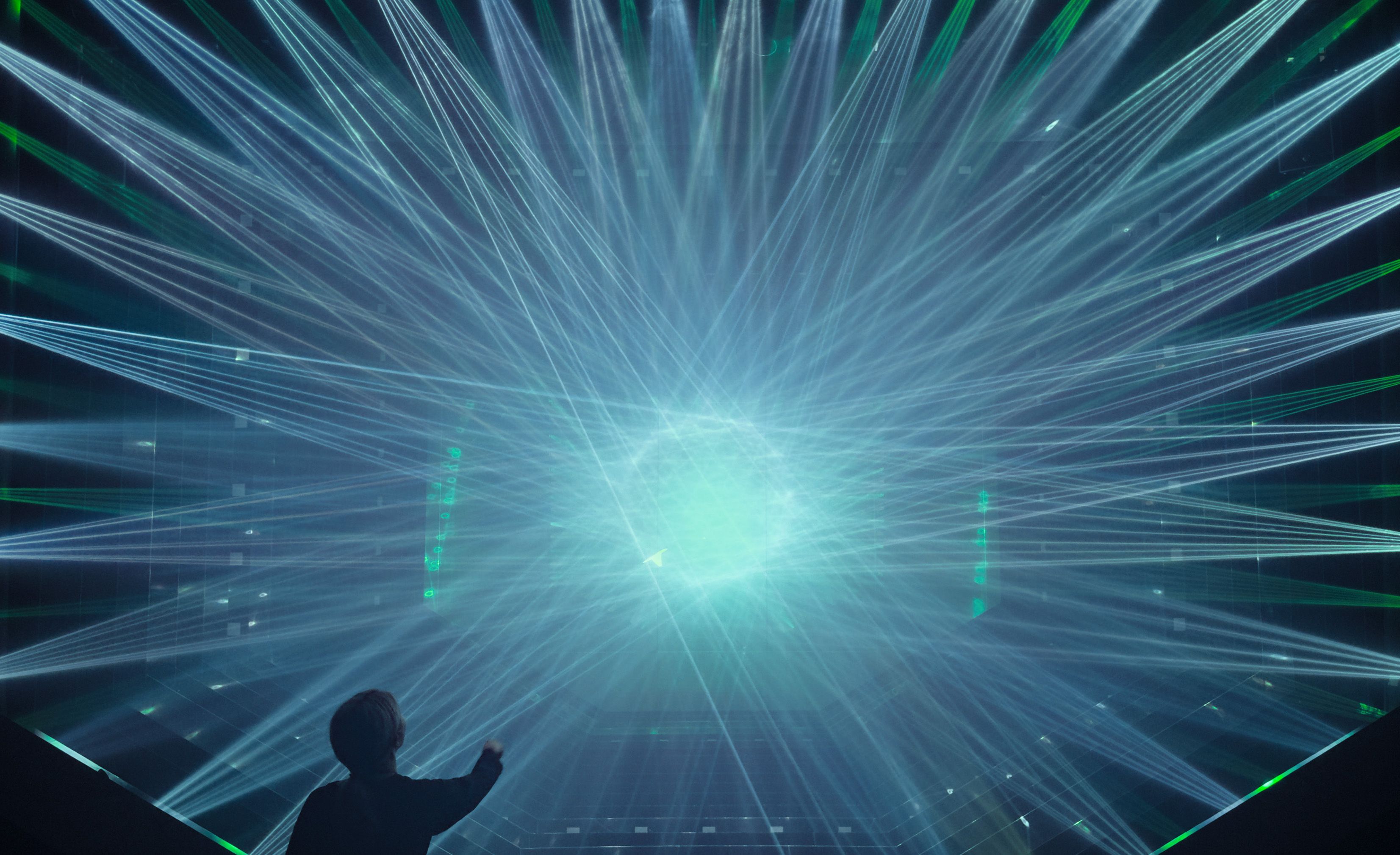 teamLab, 2025, from the series Paper Plane Music Airfield, 2018-, and from the series Light Sculpture - Flow, 2016-, Interactive Installation, Sound: Hideaki Takahashi, teamLab