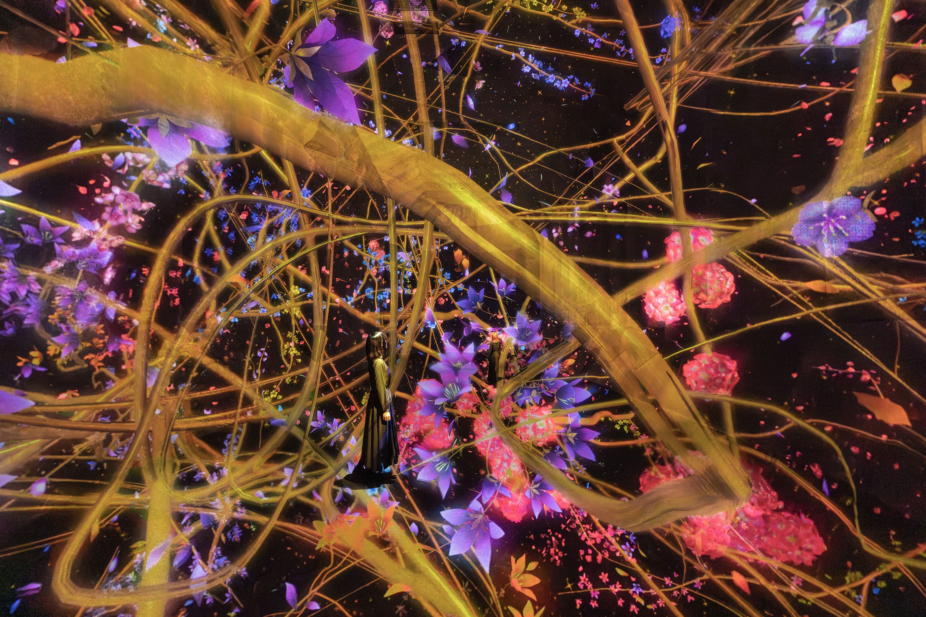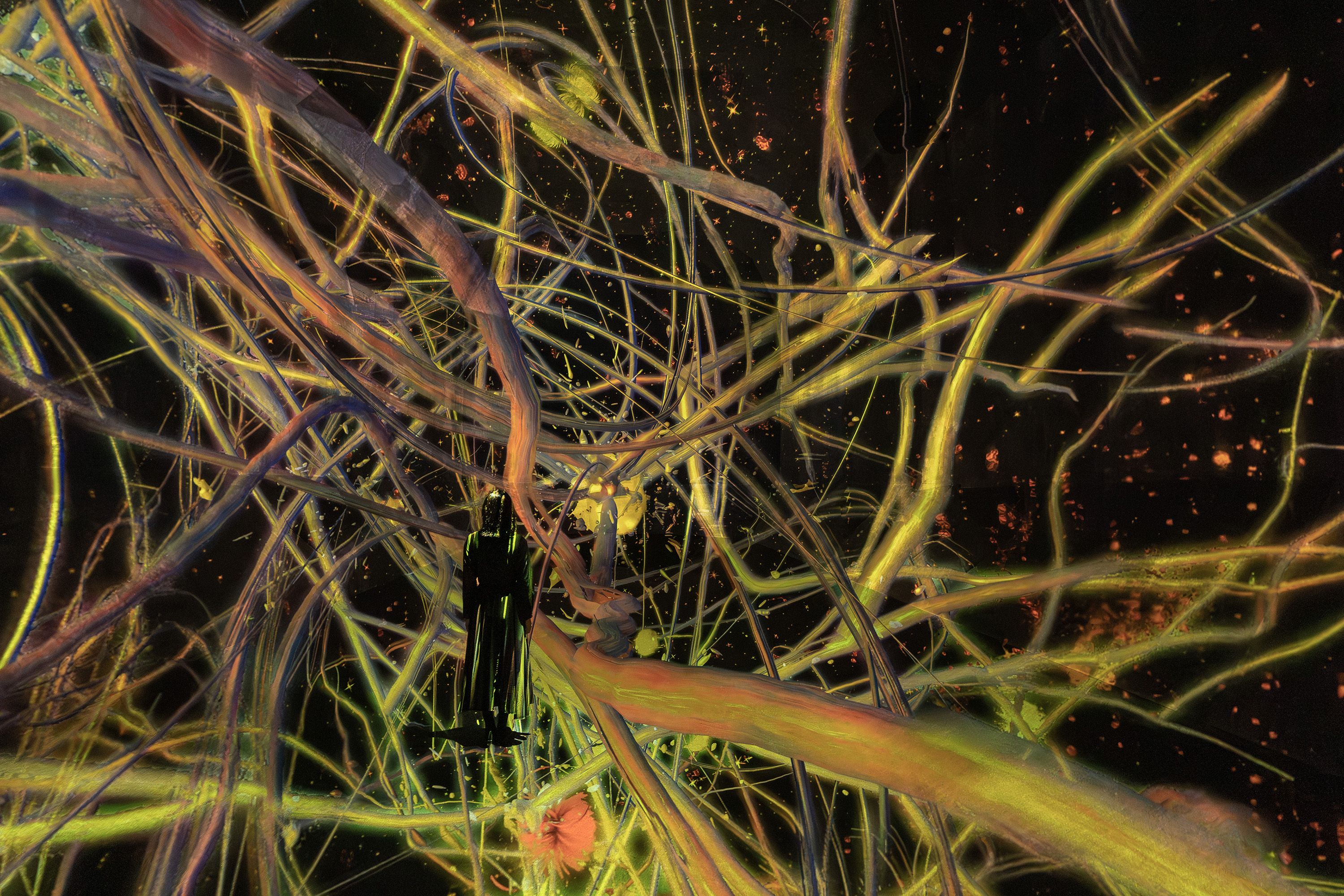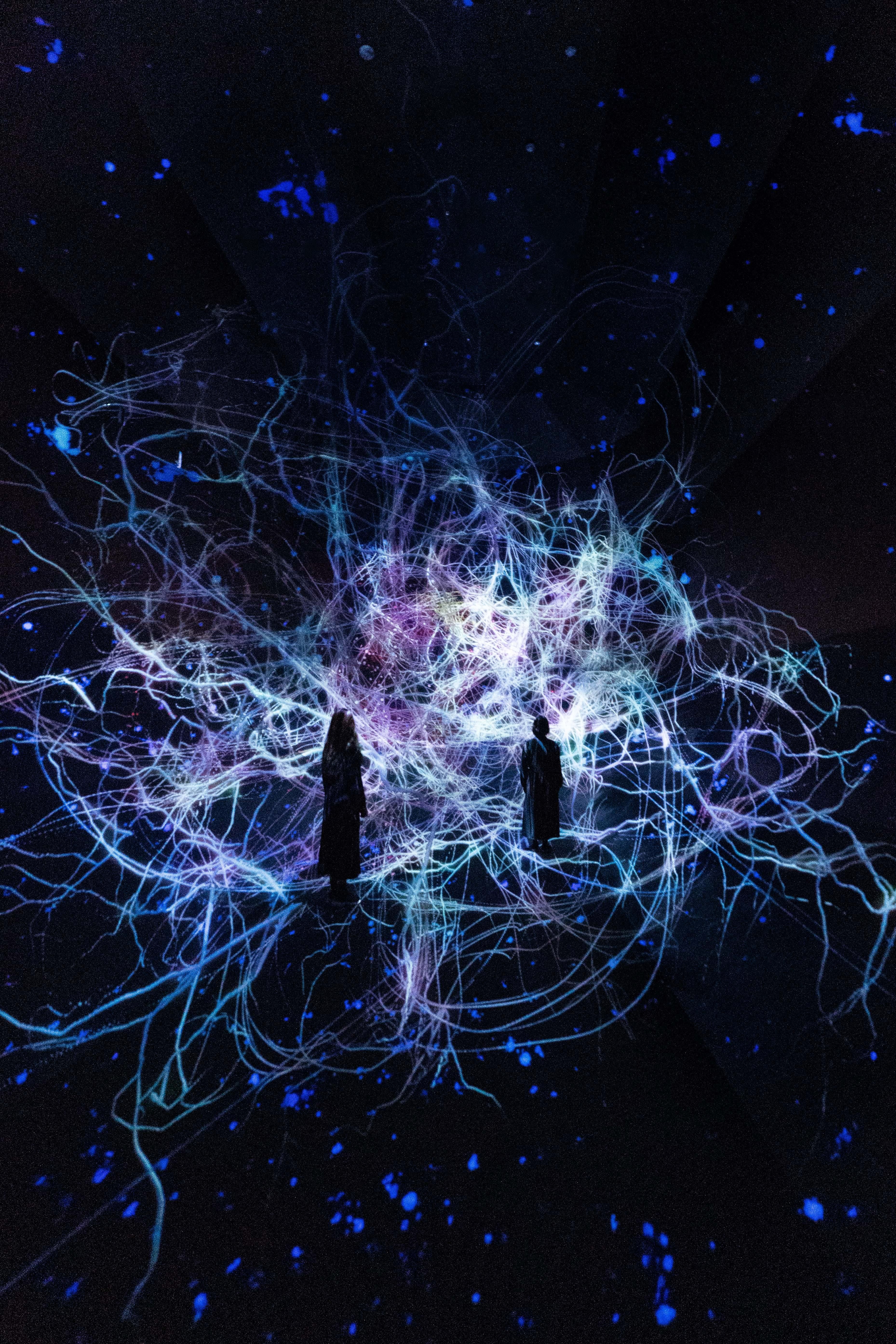 teamLab, 2025, from the series Trails of Life - Transcending Space in All Directions, 2022-, Interactive Installation, Sound: Hideaki Takahashi