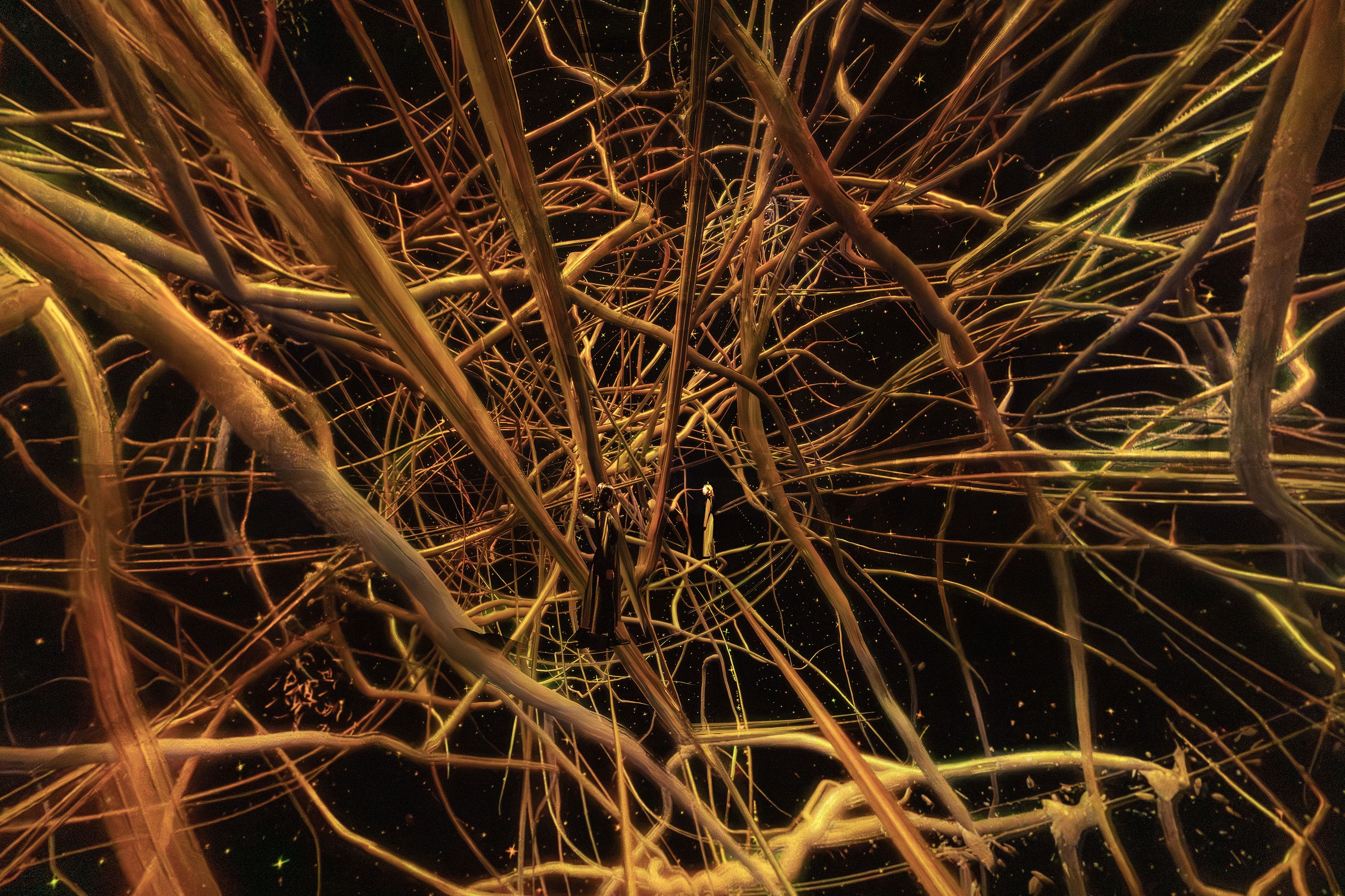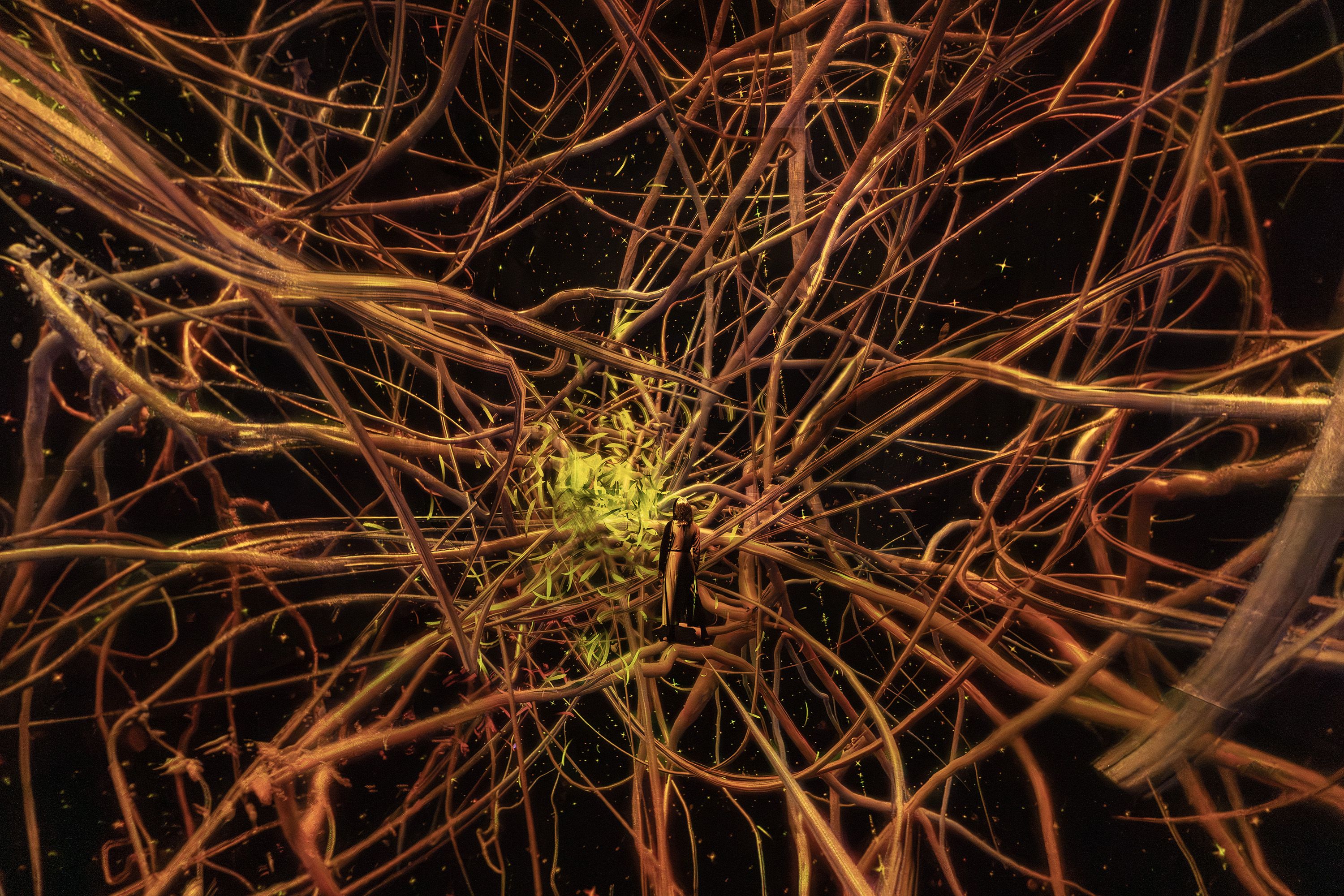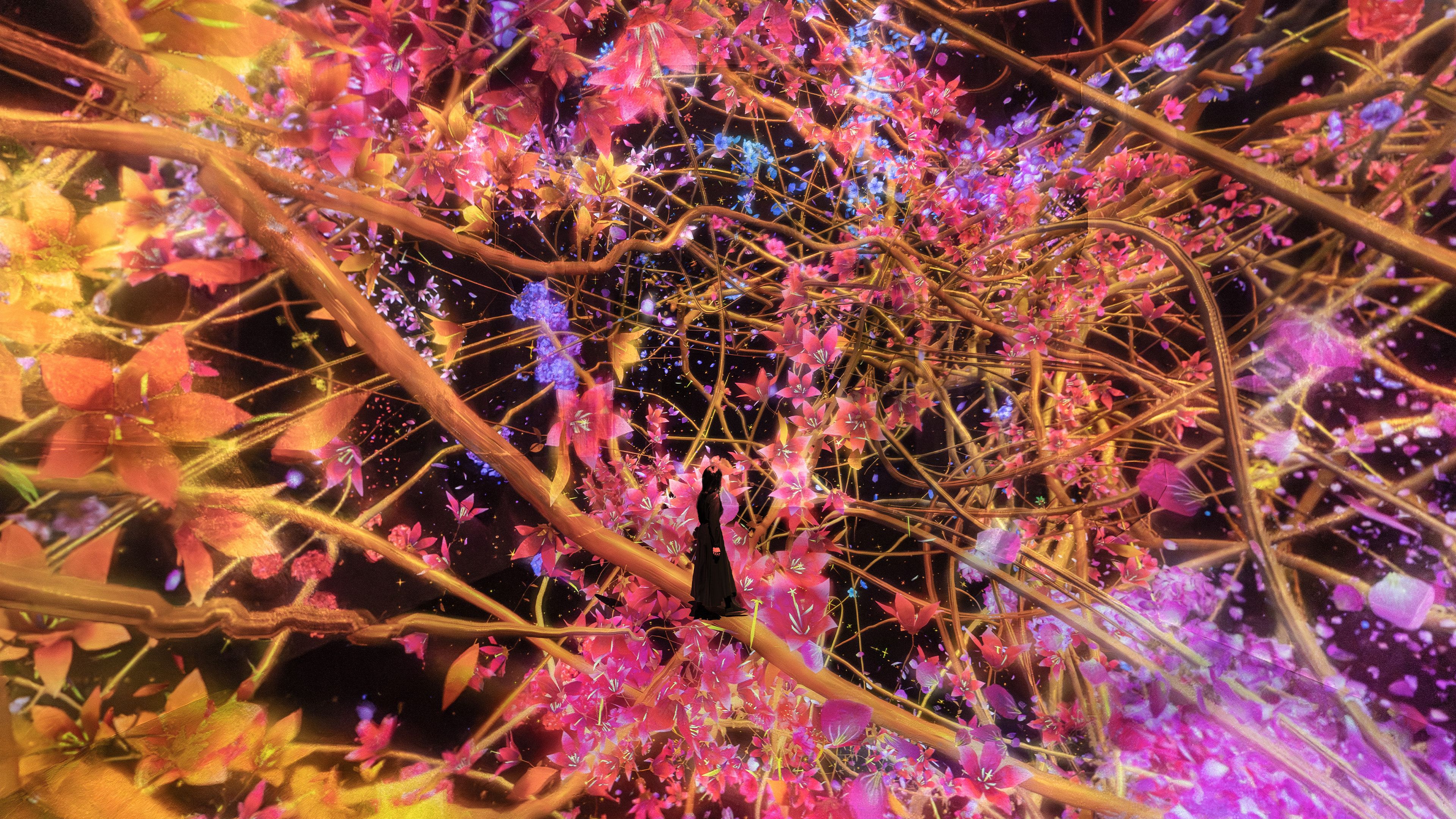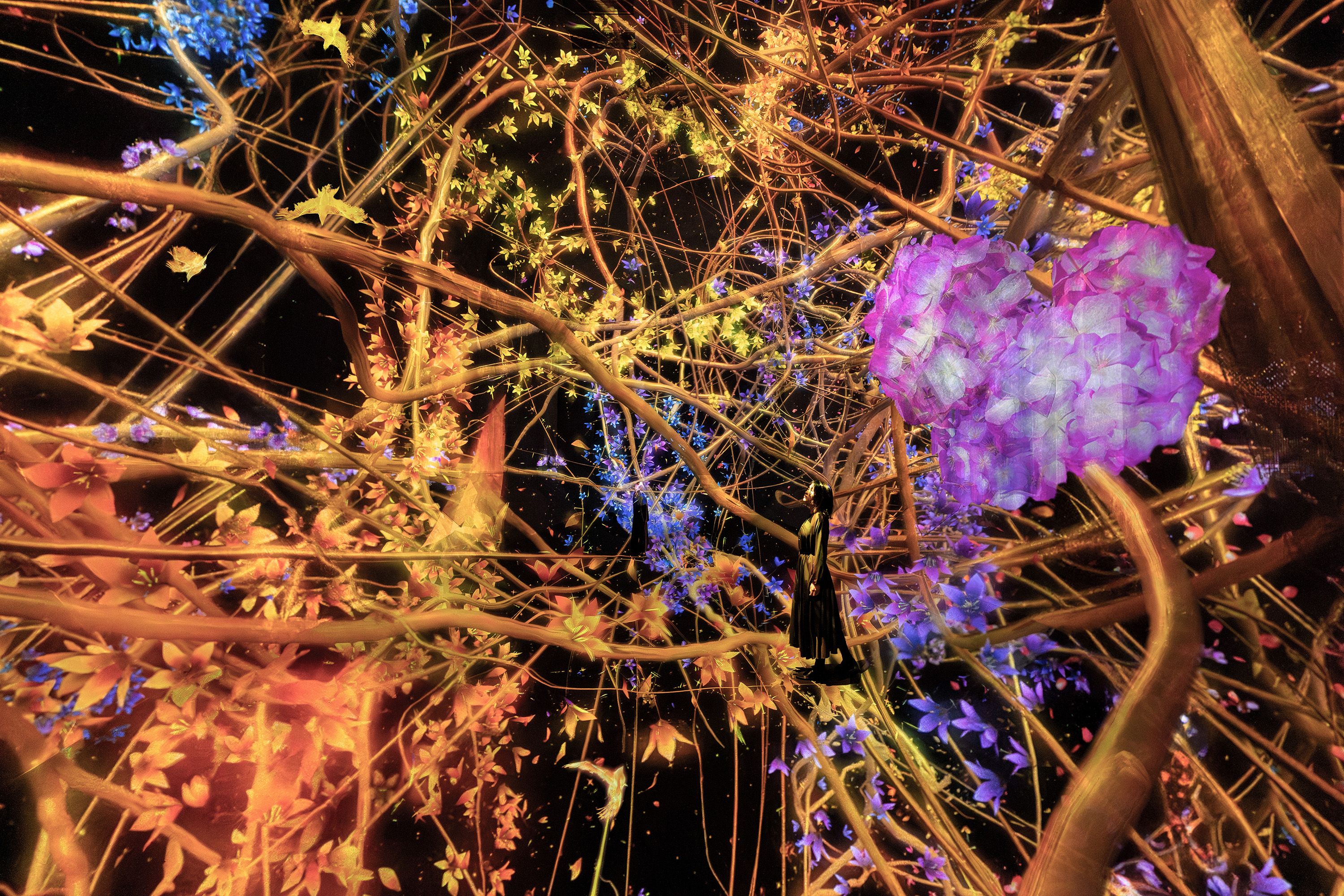 teamLab, 2025, from the series Trails of Life - Transcending Space in All Directions, 2022-, Interactive Installation, Sound: Hideaki Takahashi