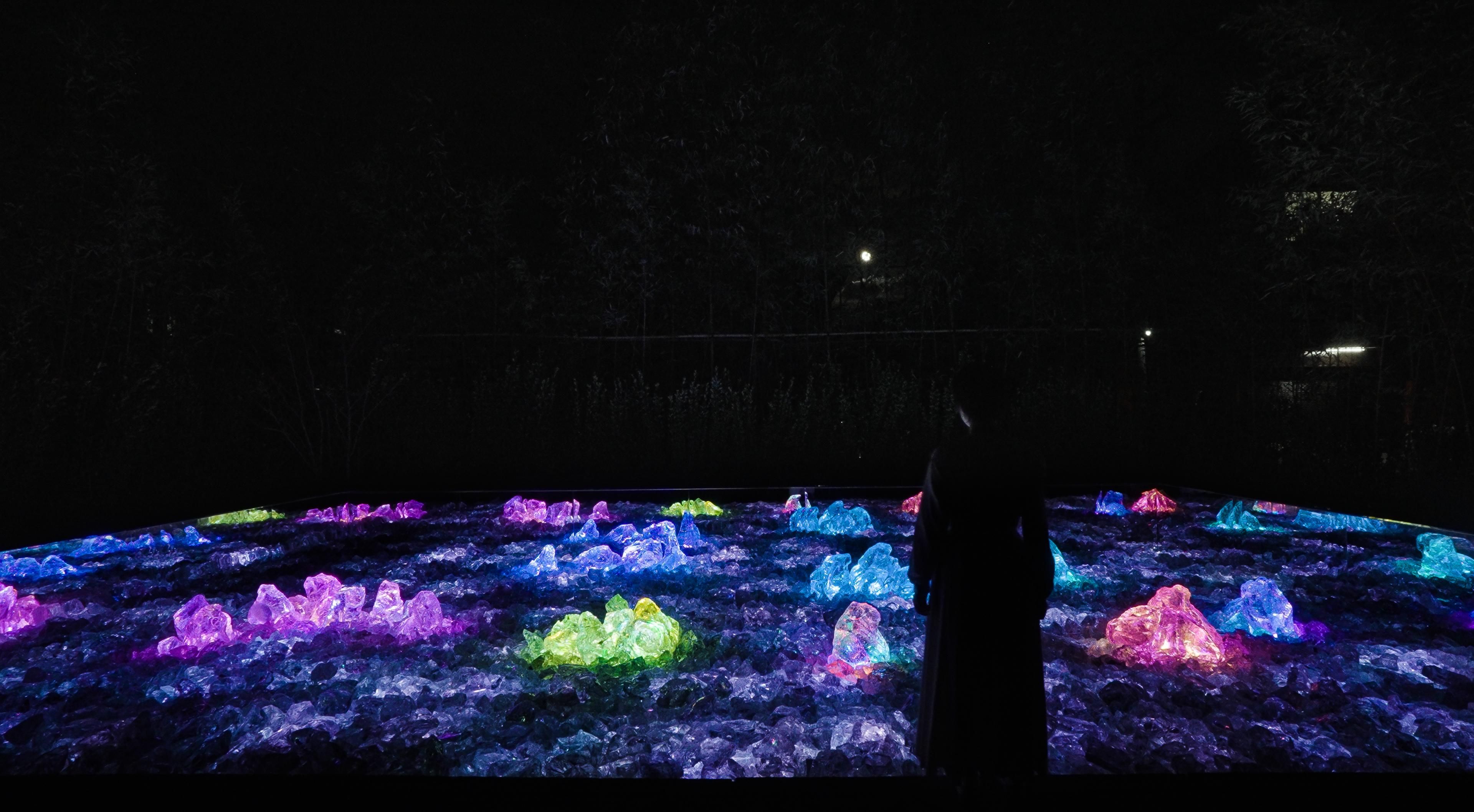 teamLab advocates Environmental Phenomena; artworks do not exist independently, but are created by the environment which produces the various phenomena that cause the artworks to exist.