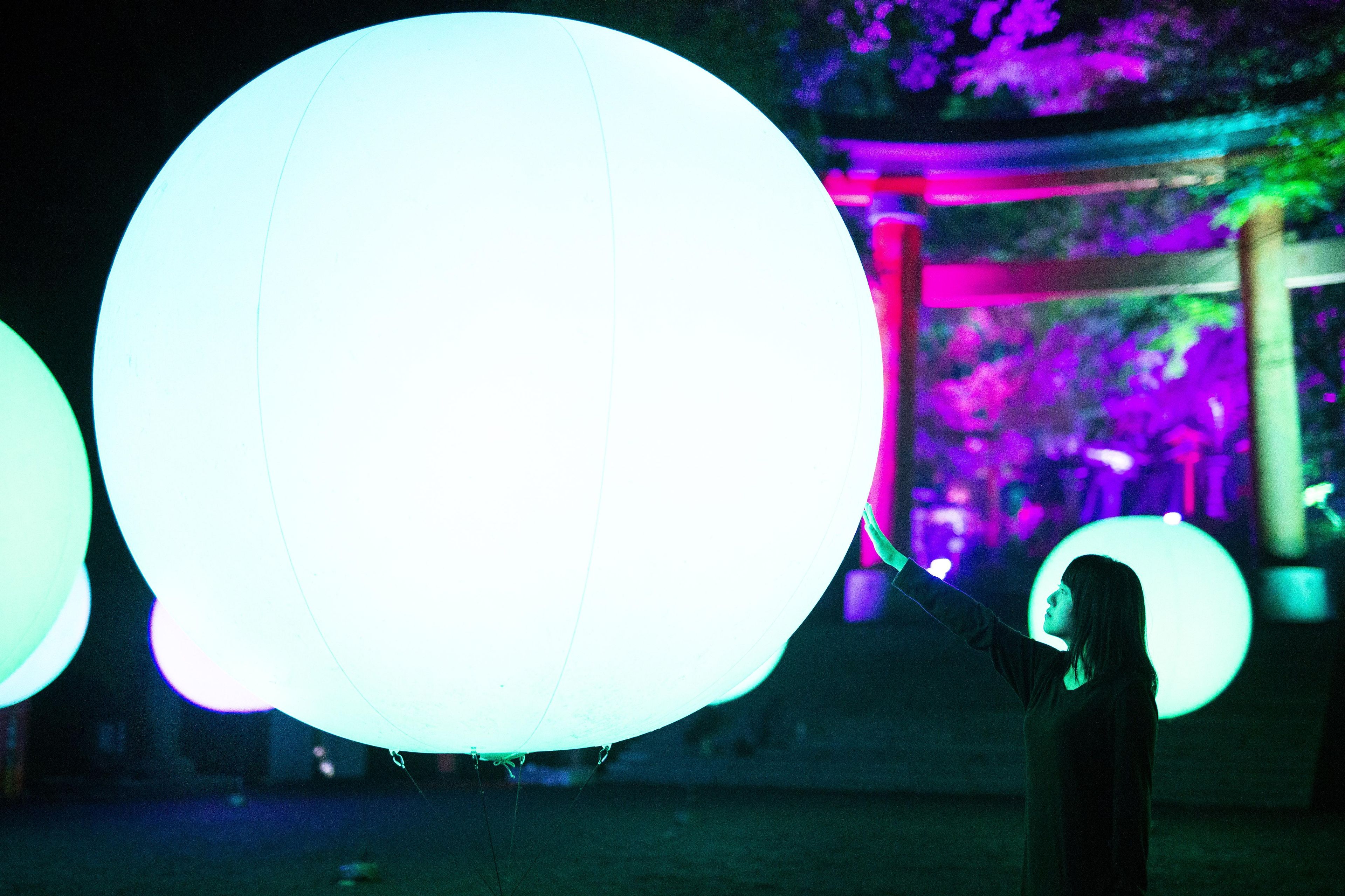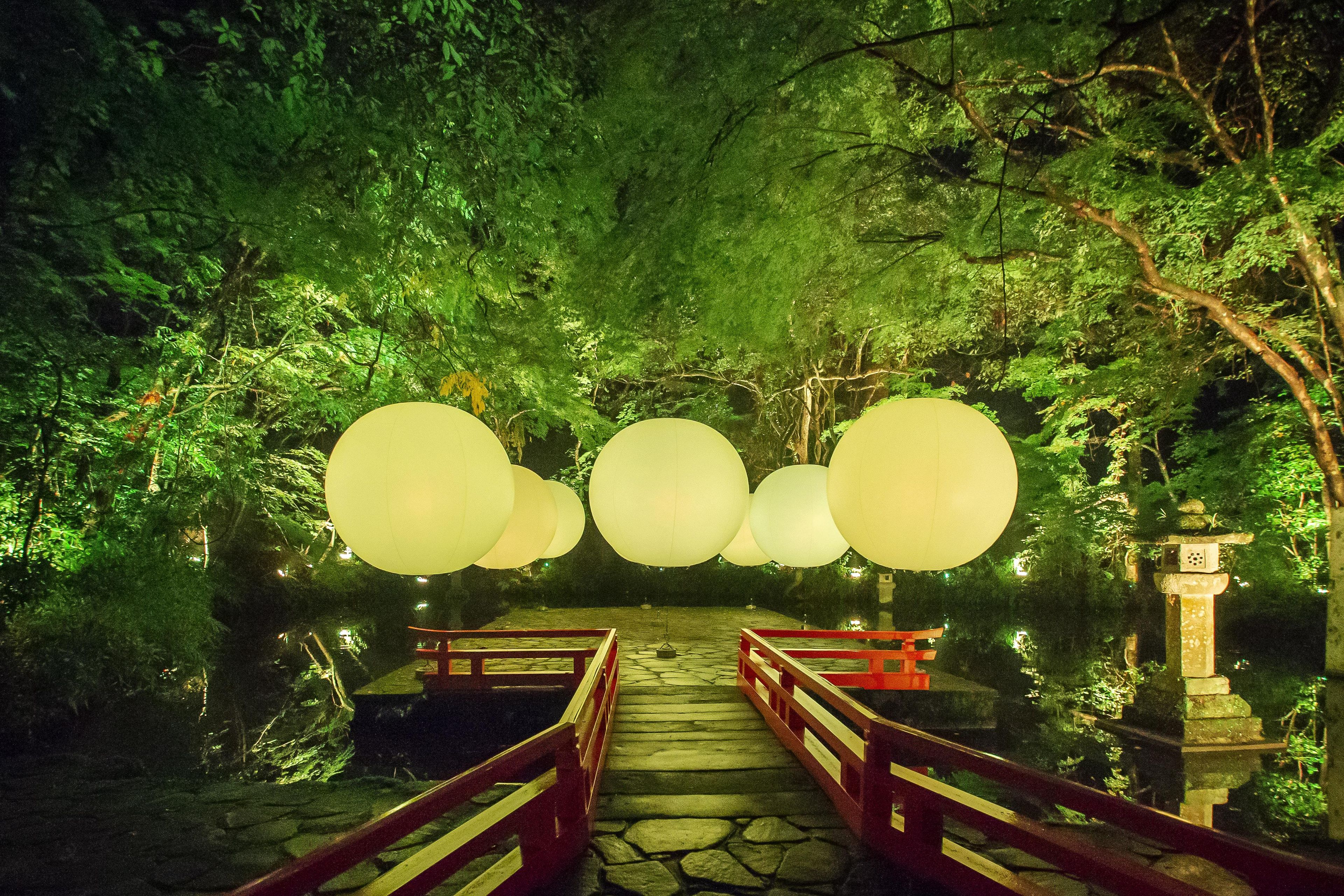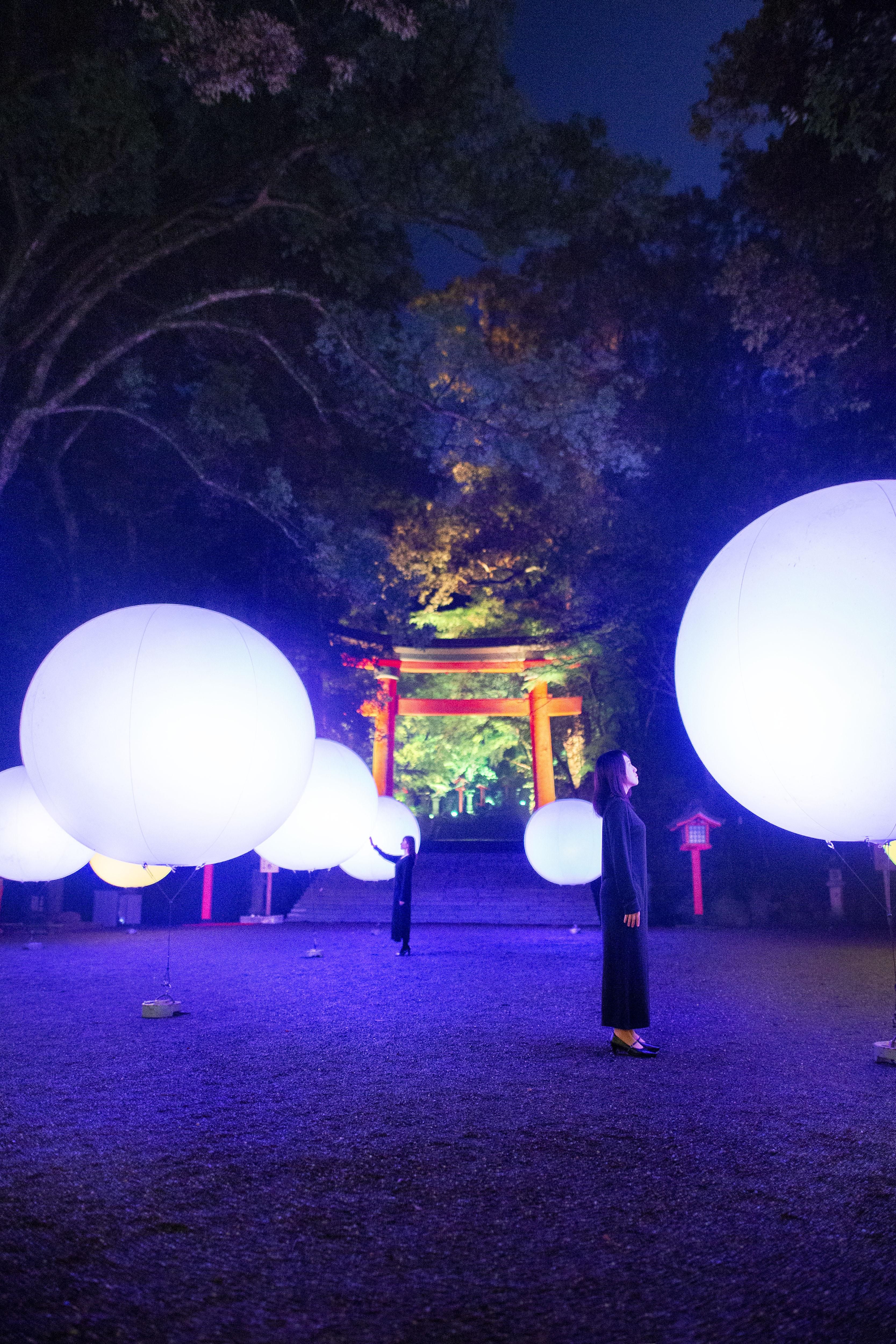 「宇佐神宫 光之祭典 Art by teamLab」中将展示「飘浮的呼应球体」及「呼应之树」。宇佐神宫的参道与森林,将因为人们的存在而变化为一个互动的光之数字艺术空间。
