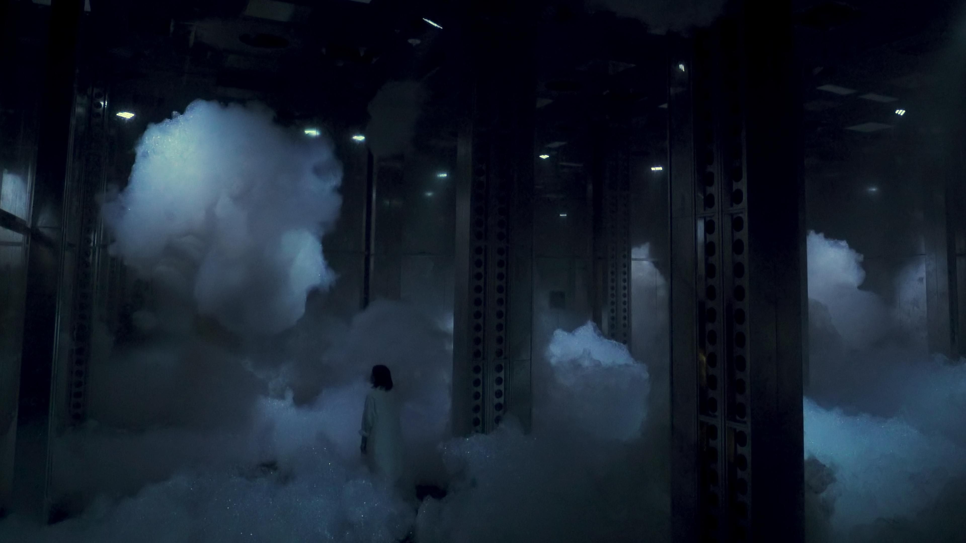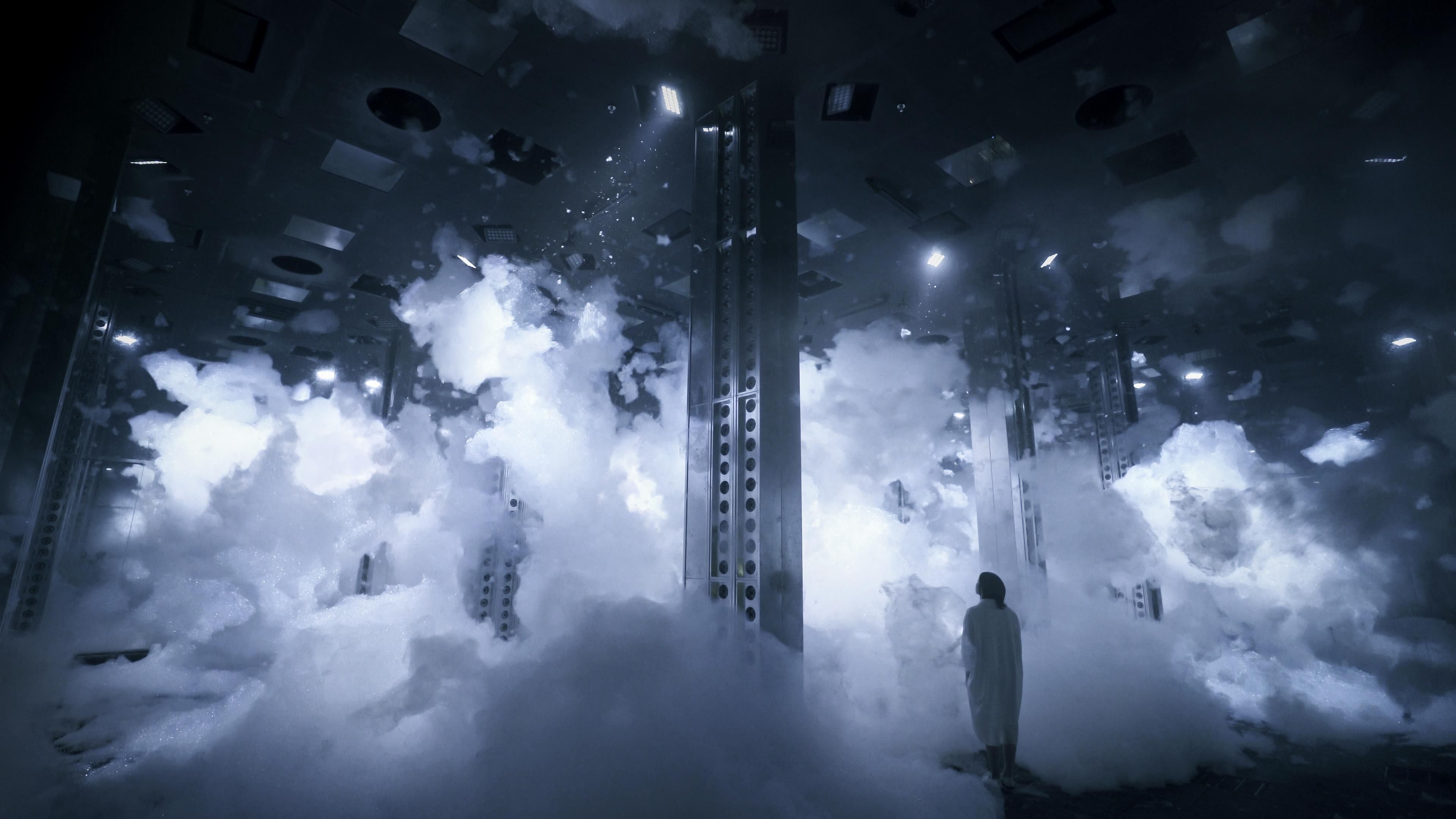 This floating, immense sculpture emerges from a sea of bubbles, transcending the very concept of mass. It neither sinks to the ground nor rises completely to the ceiling, but instead drifts in the middle of the space. The contours of its existence are ambiguous—it fragments into smaller pieces, but merges into a larger mass. Even when people fully immerse themselves in this sculpture, its existence remains intact. If broken by people, it naturally restores itself. However, when the sculpture is destroyed beyond what it can repair, it collapses, unable to recover. Even if people try to move or push this floating sculpture, they cannot do so, and if they stir up wind, the sculpture disperses entirely. Physical human actions cannot move the sculpture.