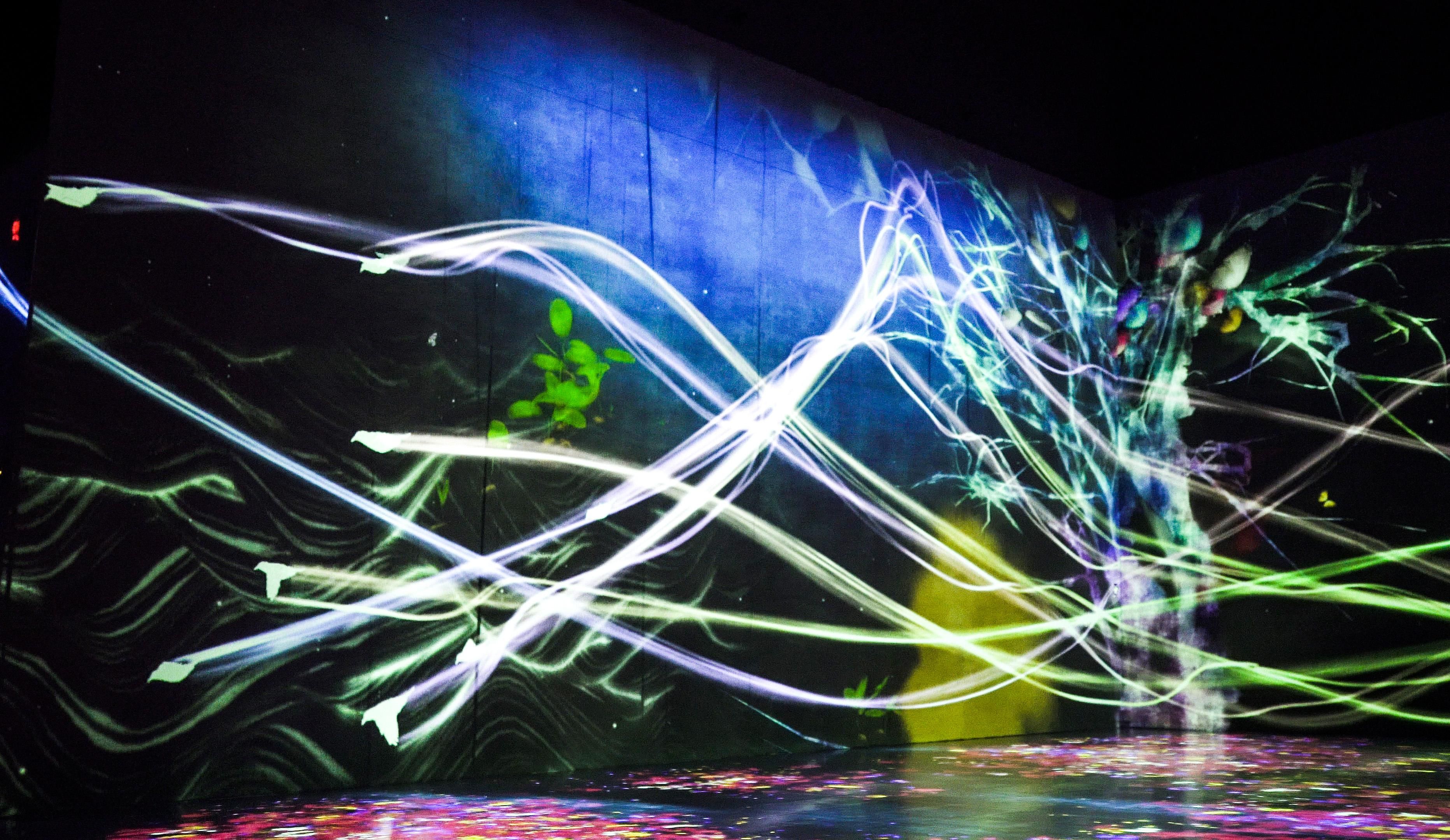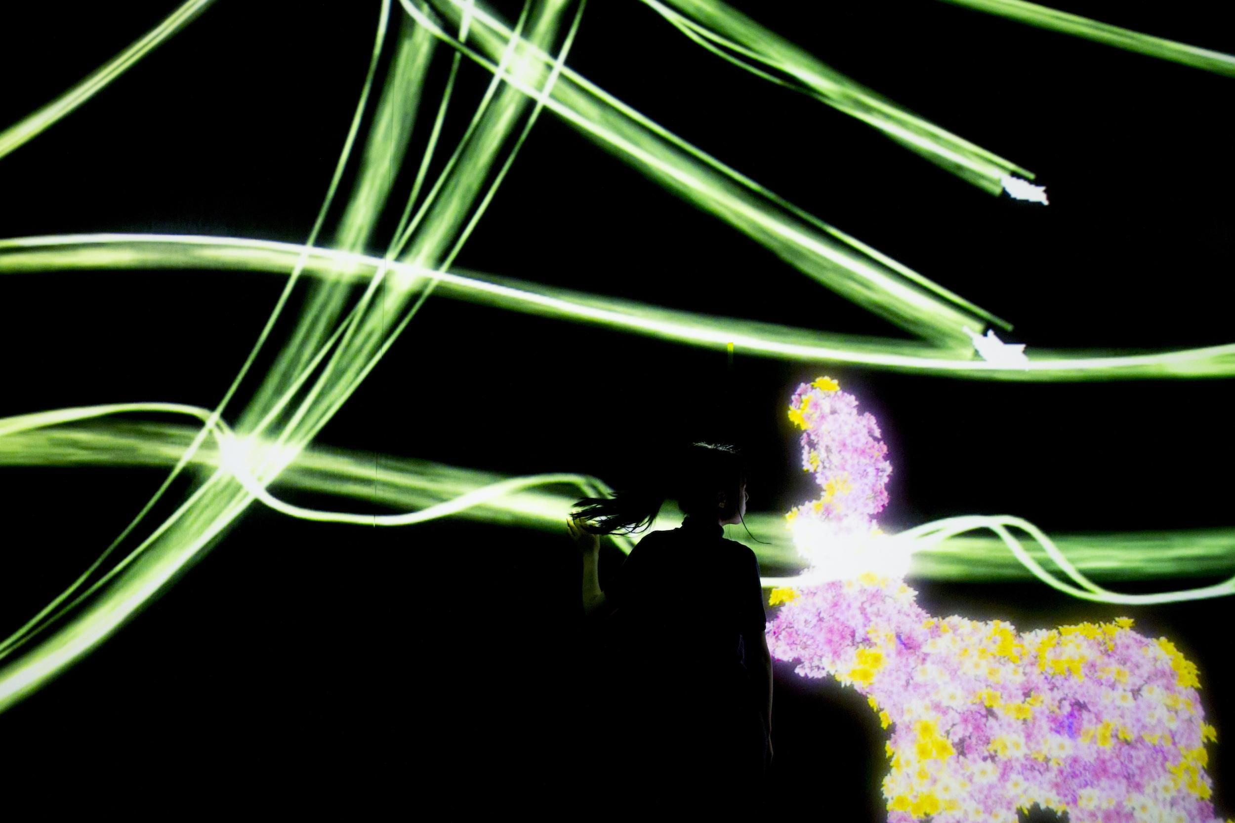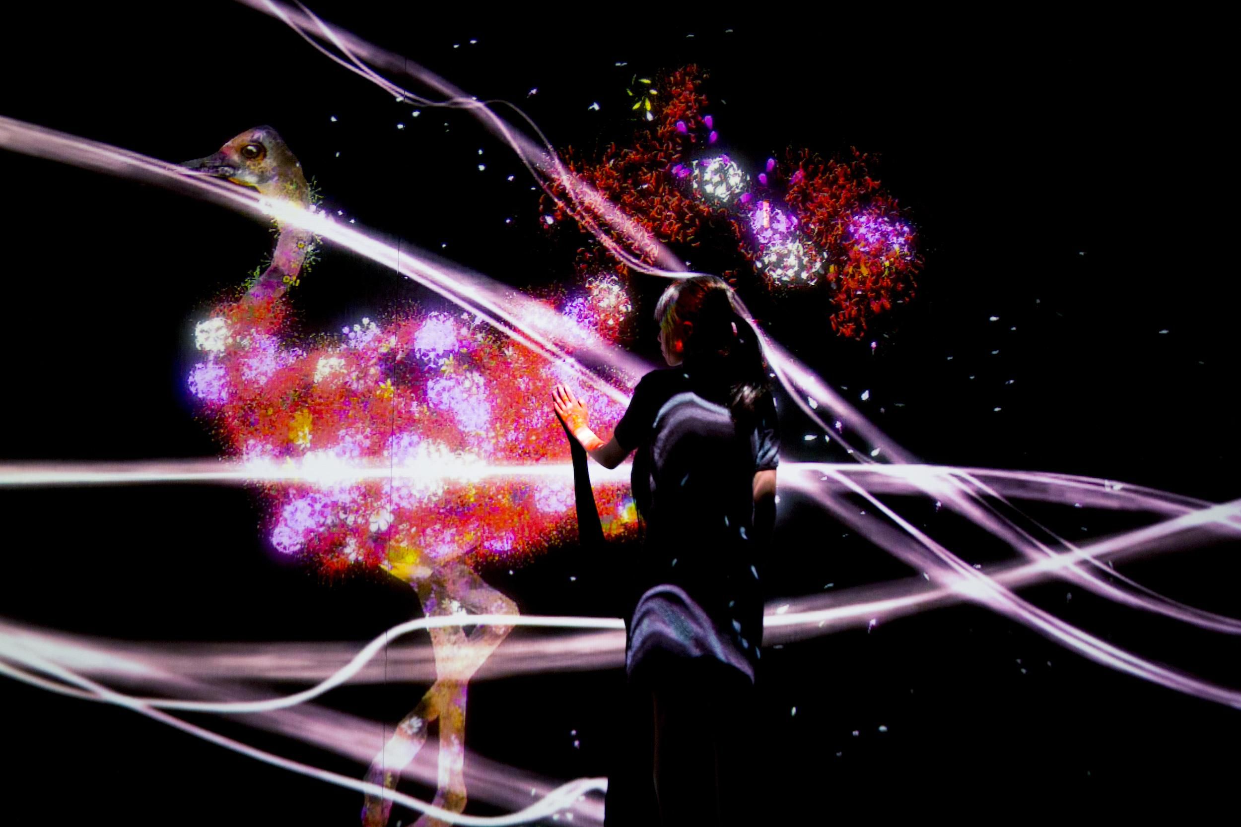 teamLab, 2018-, from the series Crows are Chased and the Chasing Crows are Destined to be Chased as Well, 2013-, Interactive Installation, Endless, Sound: Hideaki Takahashi