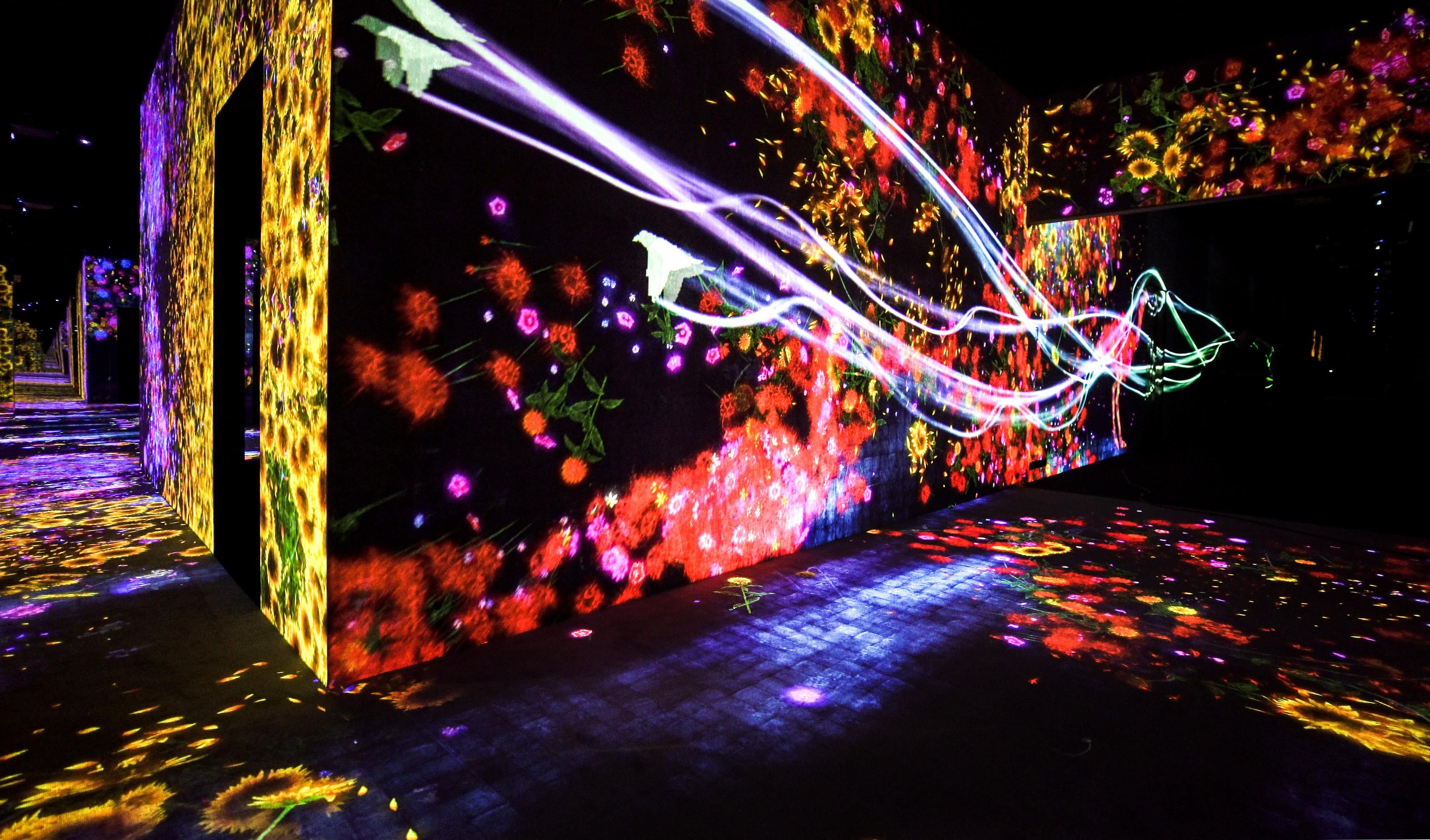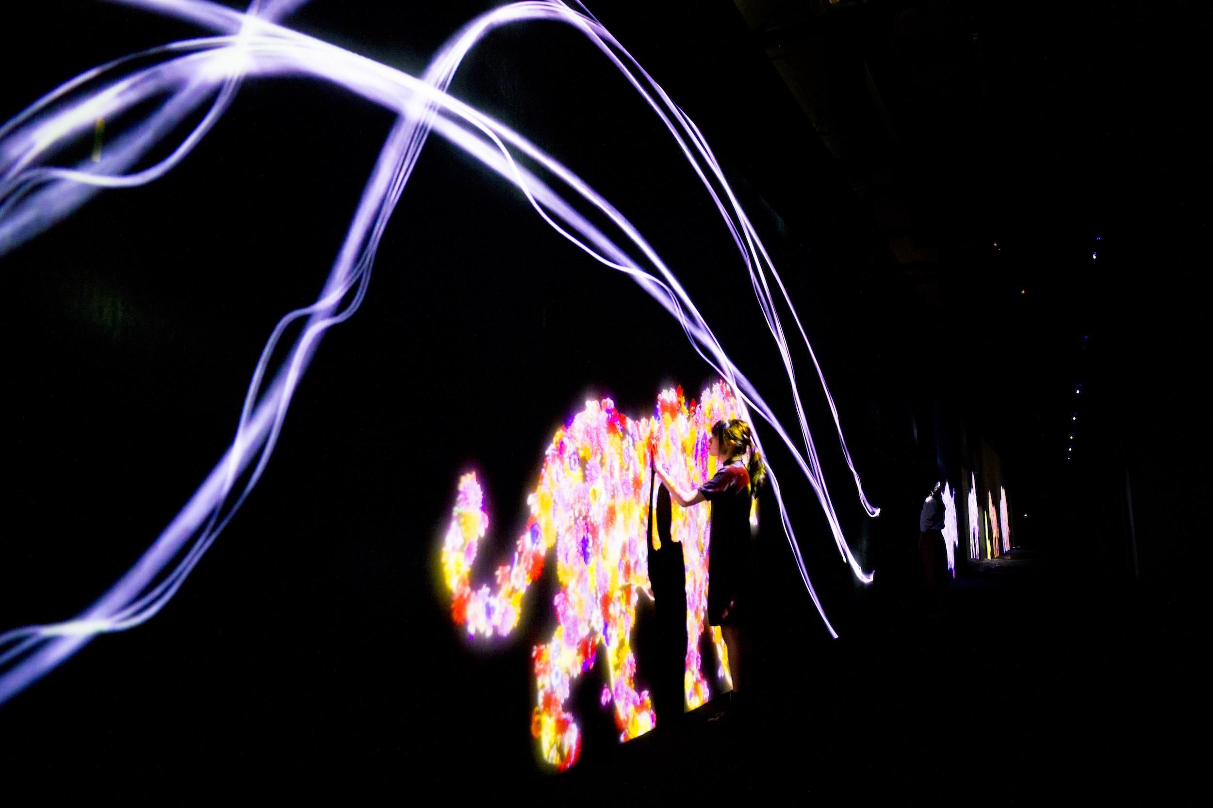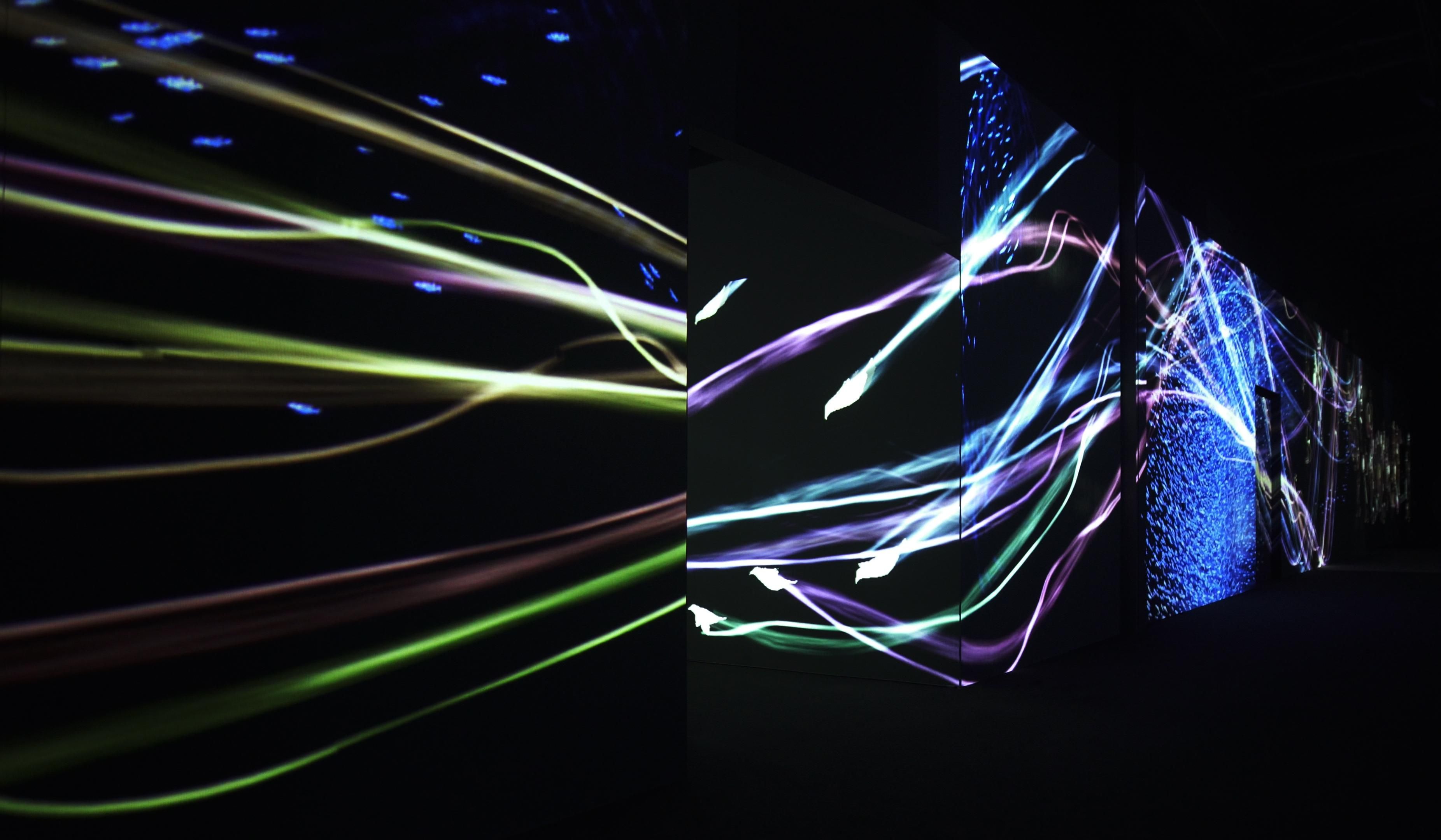 teamLab, 2018-, from the series Crows are Chased and the Chasing Crows are Destined to be Chased as Well, 2013-, Interactive Installation, Endless, Sound: Hideaki Takahashi