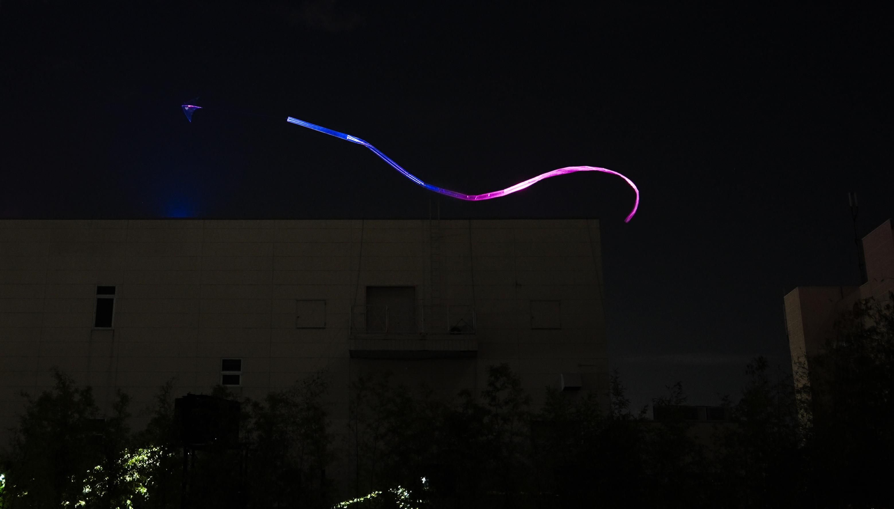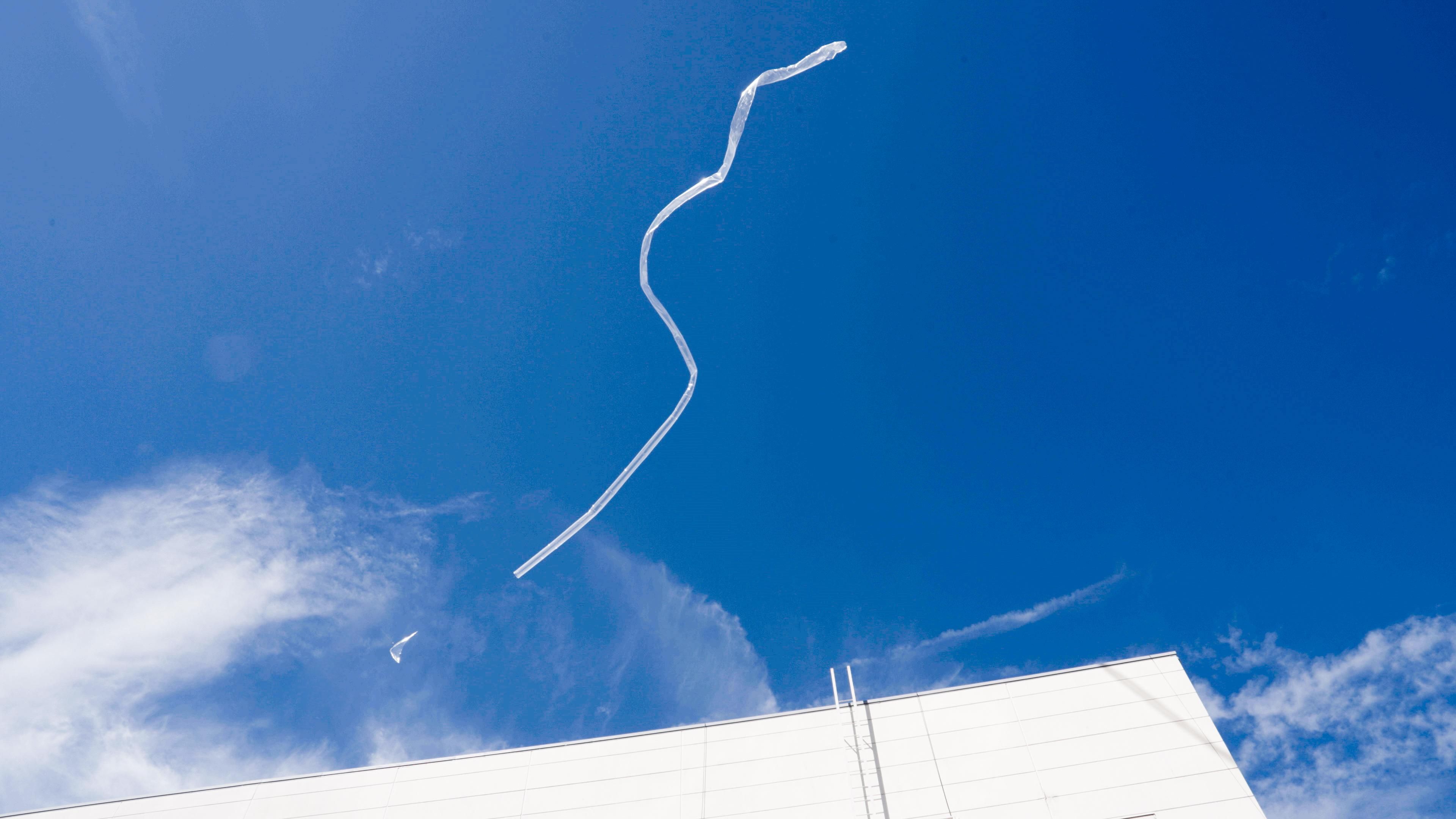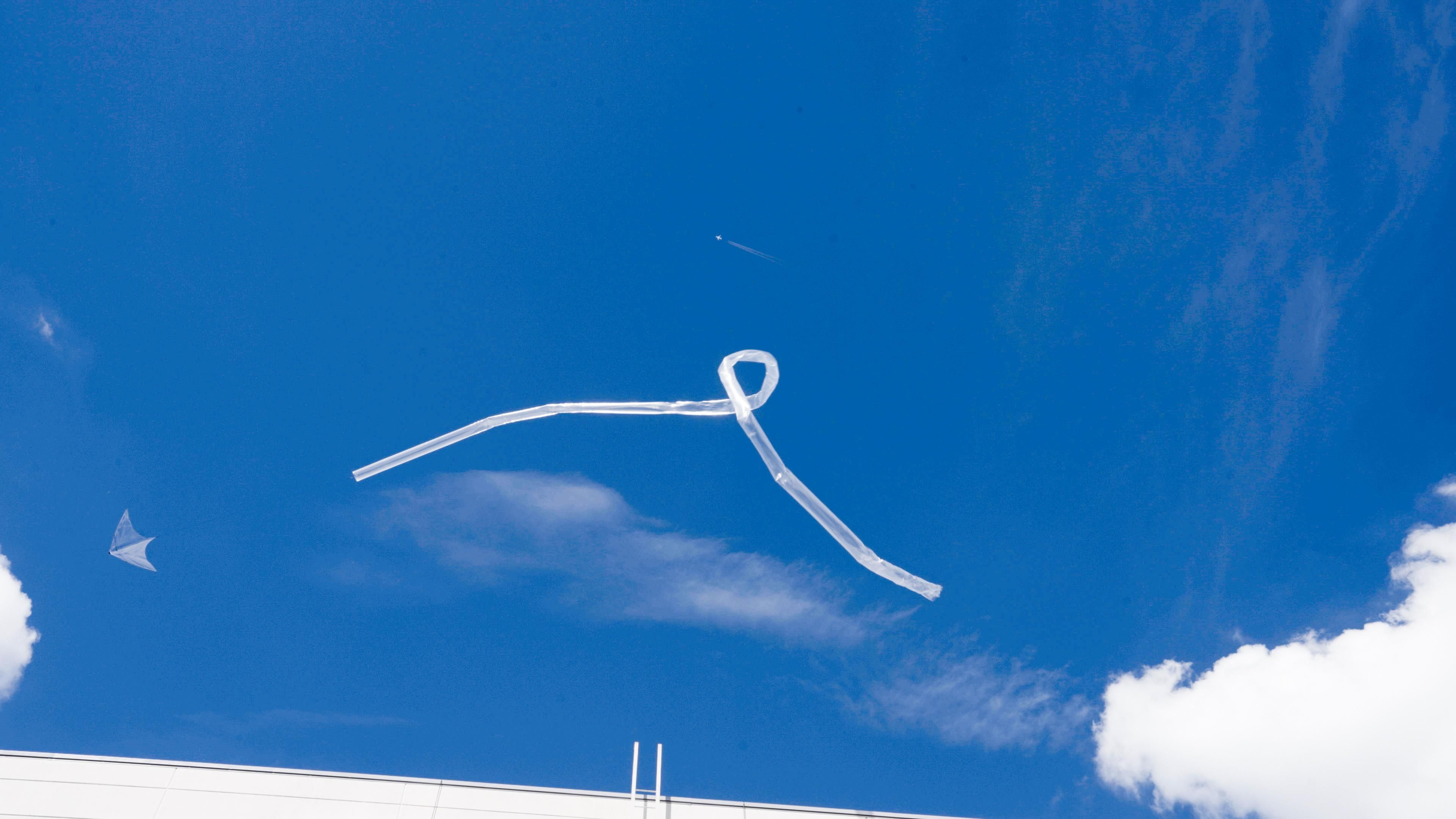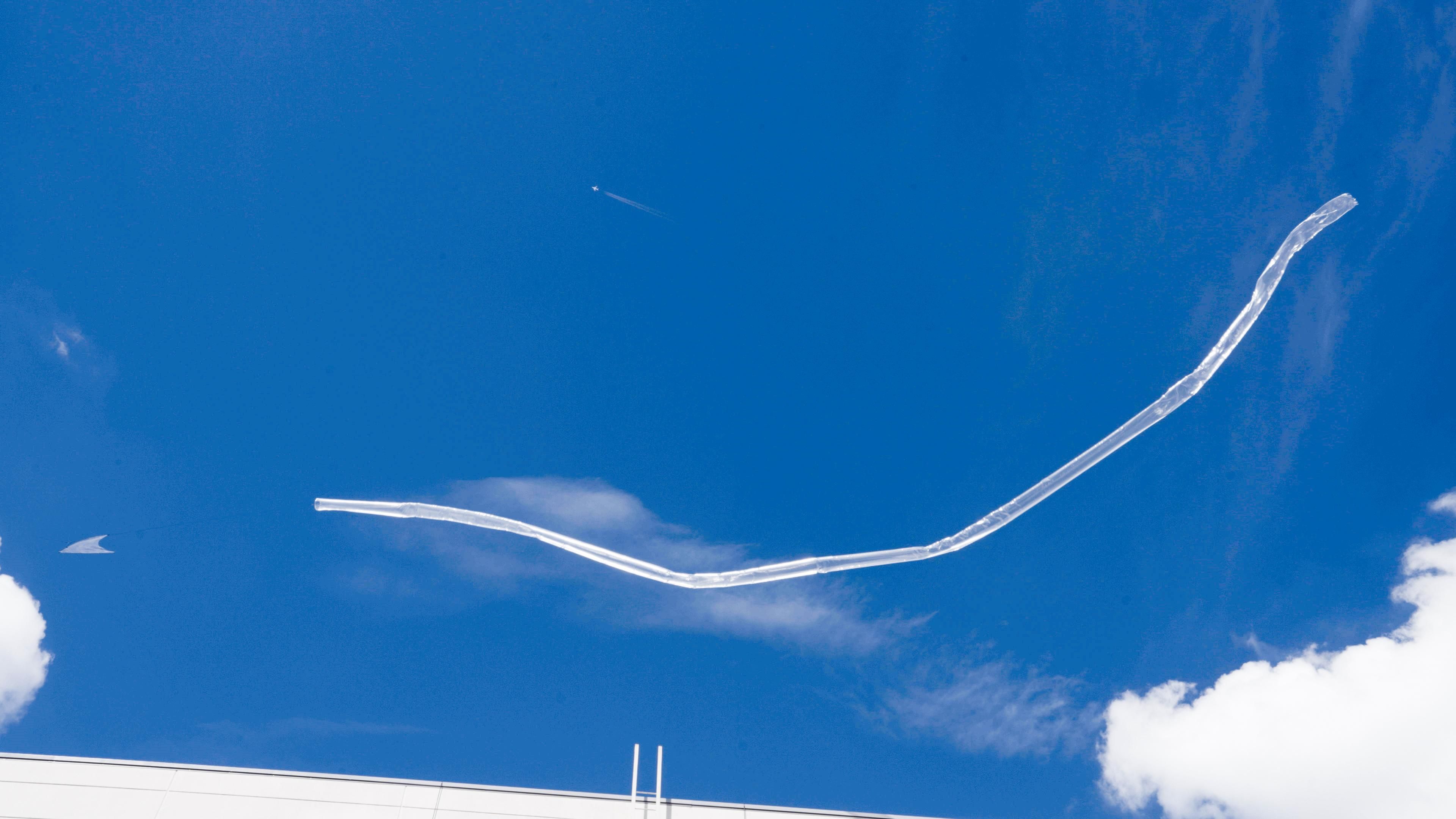 When the wind blows, this artwork appears in the sky. It shines when the sun comes out and glows when the sun sets.