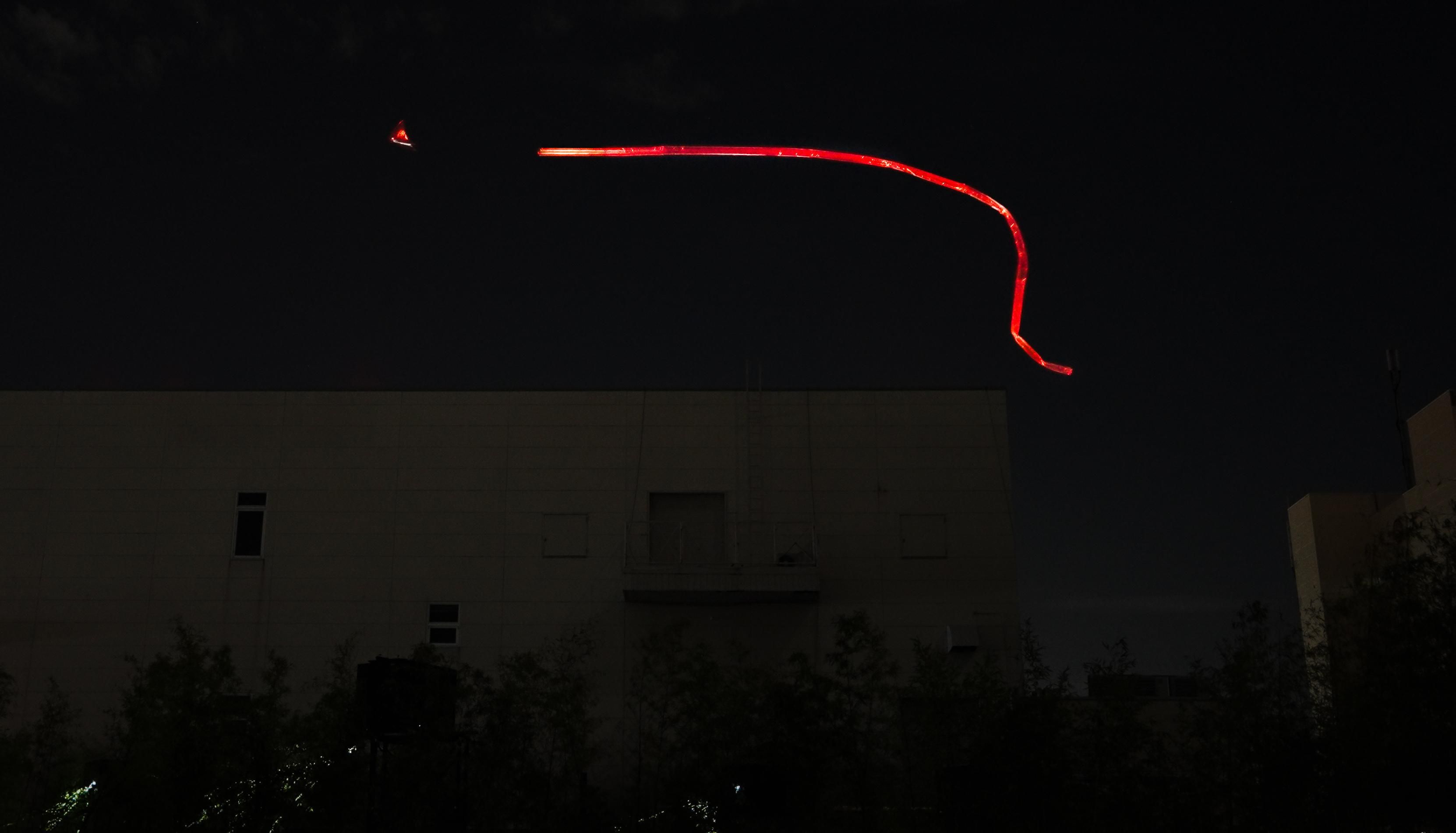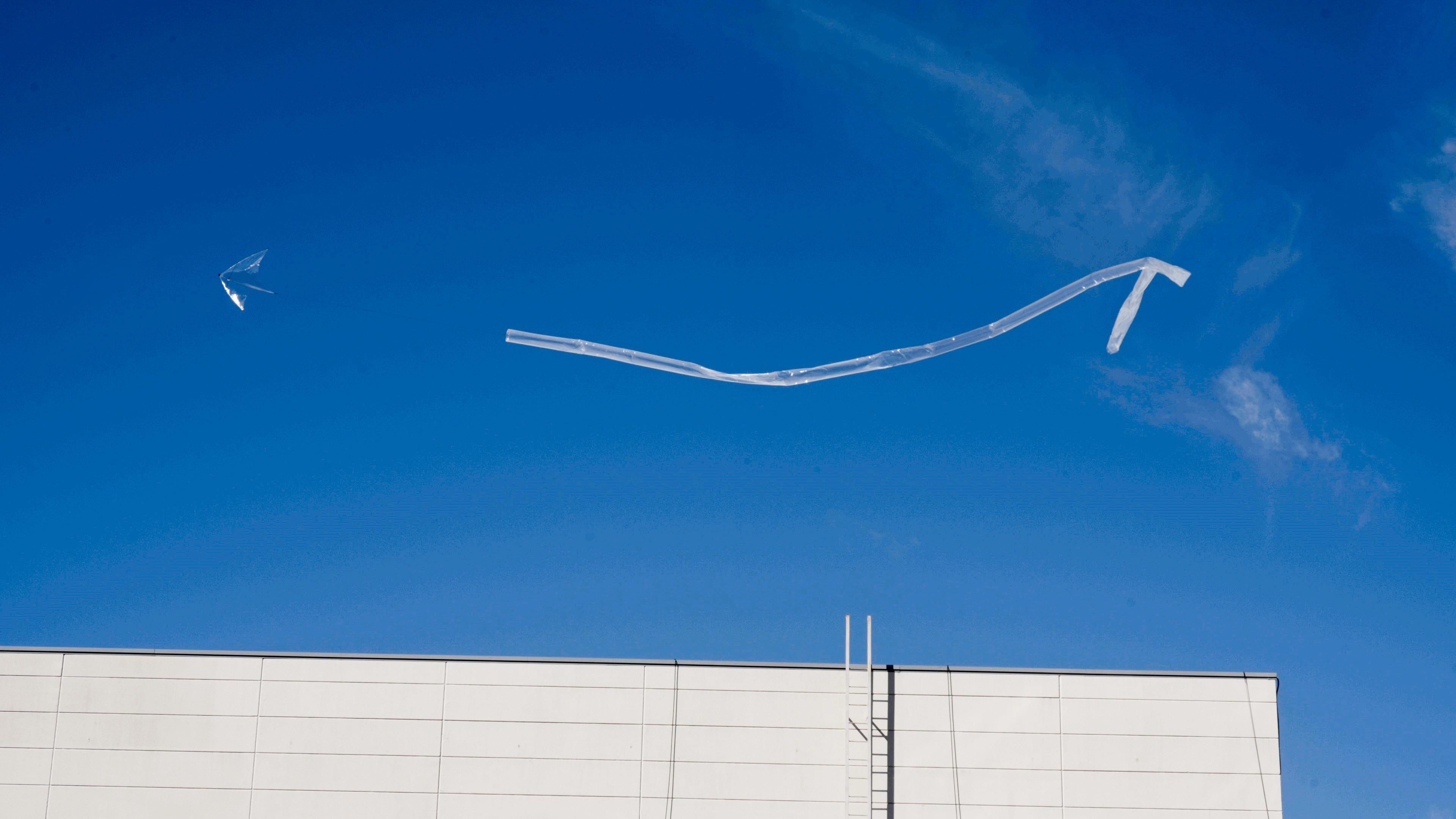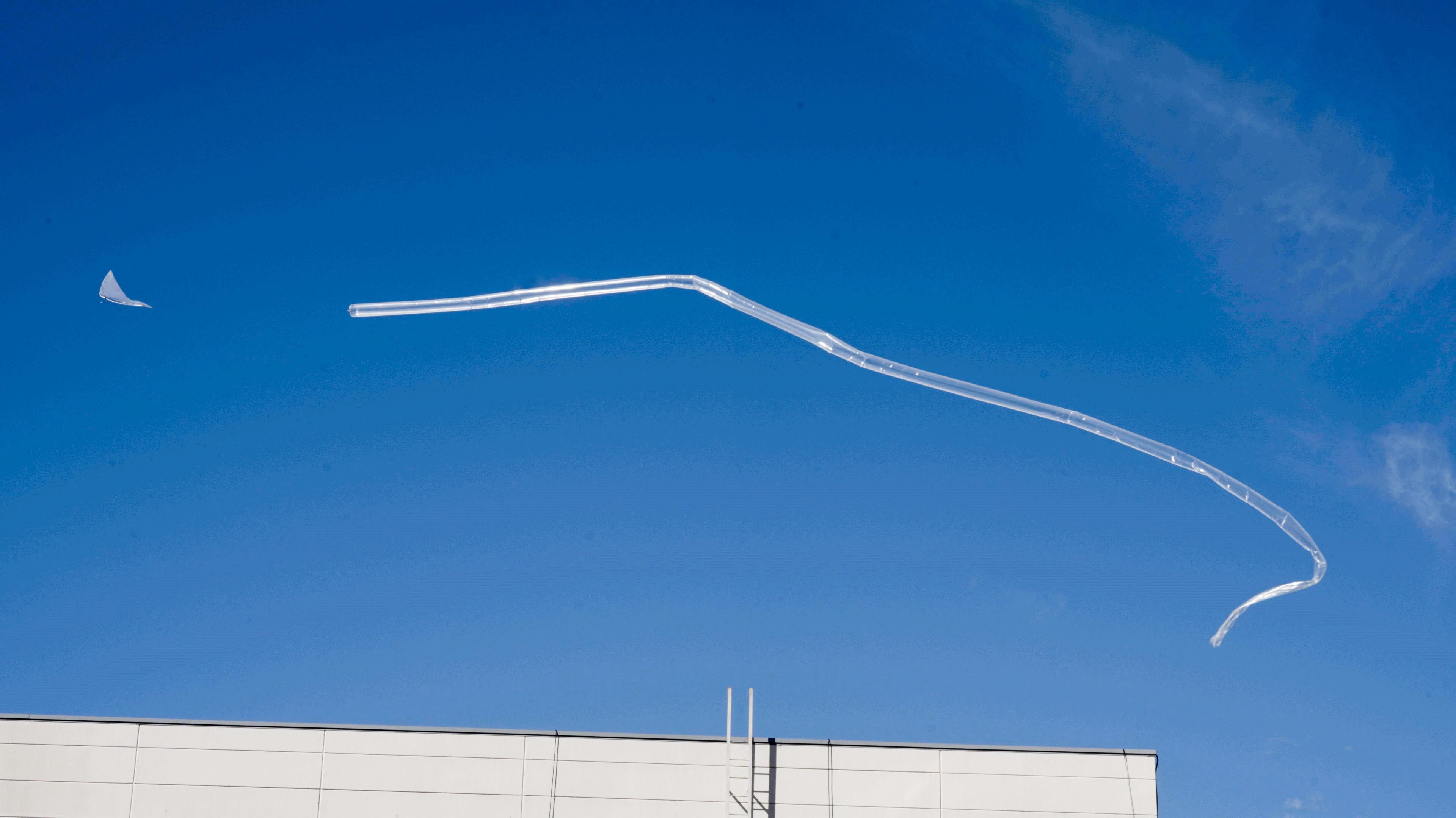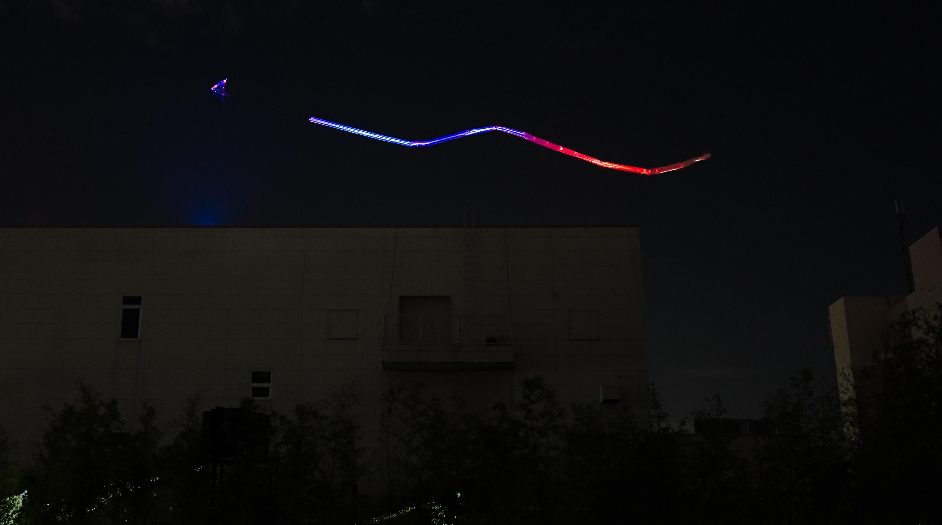 When the wind blows, this artwork appears in the sky. It shines when the sun comes out and glows when the sun sets.