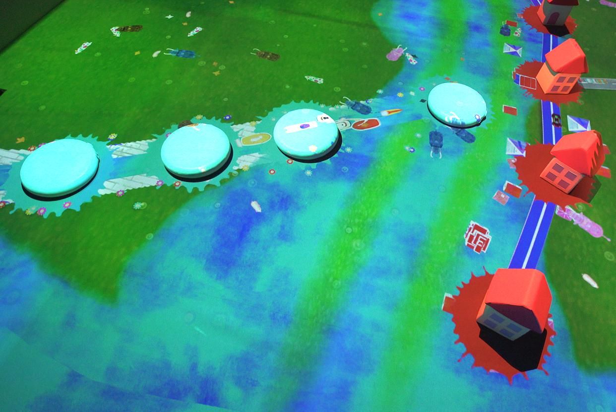 只要在泛滥的河流附近放置代表水池的积木,就能够创造出水路,当把水路与海洋相连结后,就可以防止河水泛滥。