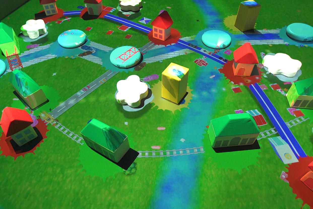 若将同类的积木放在附近,它们便会相连,出现行驶的交通工具。积木越连越多,交通工具也会越发进化。大厦会有直升机飞出,从直升机鸟瞰到的世界则会投射在上空的萤幕中。