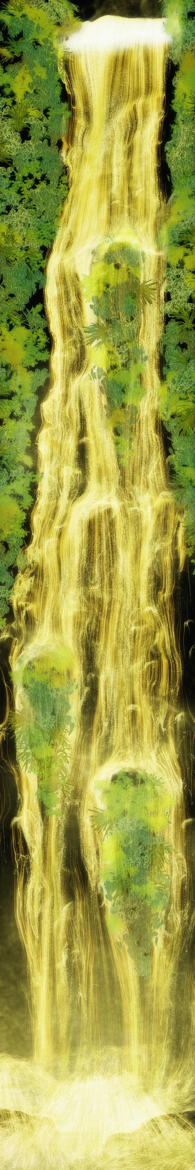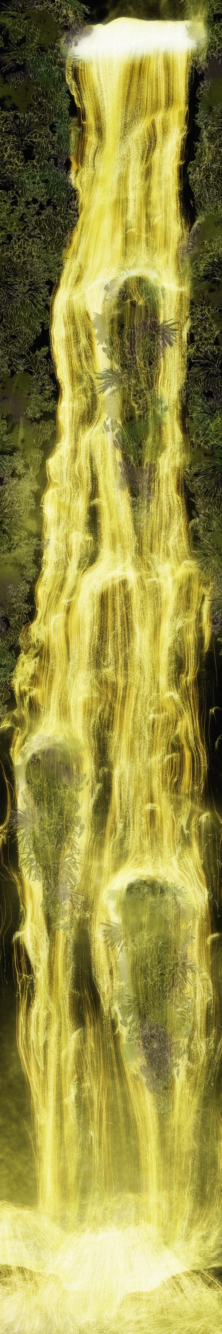这麽一来这些在三次元空间里被立体描绘出的瀑布,就能够以超主観空间爲名基础概念上化为一个影像作品。