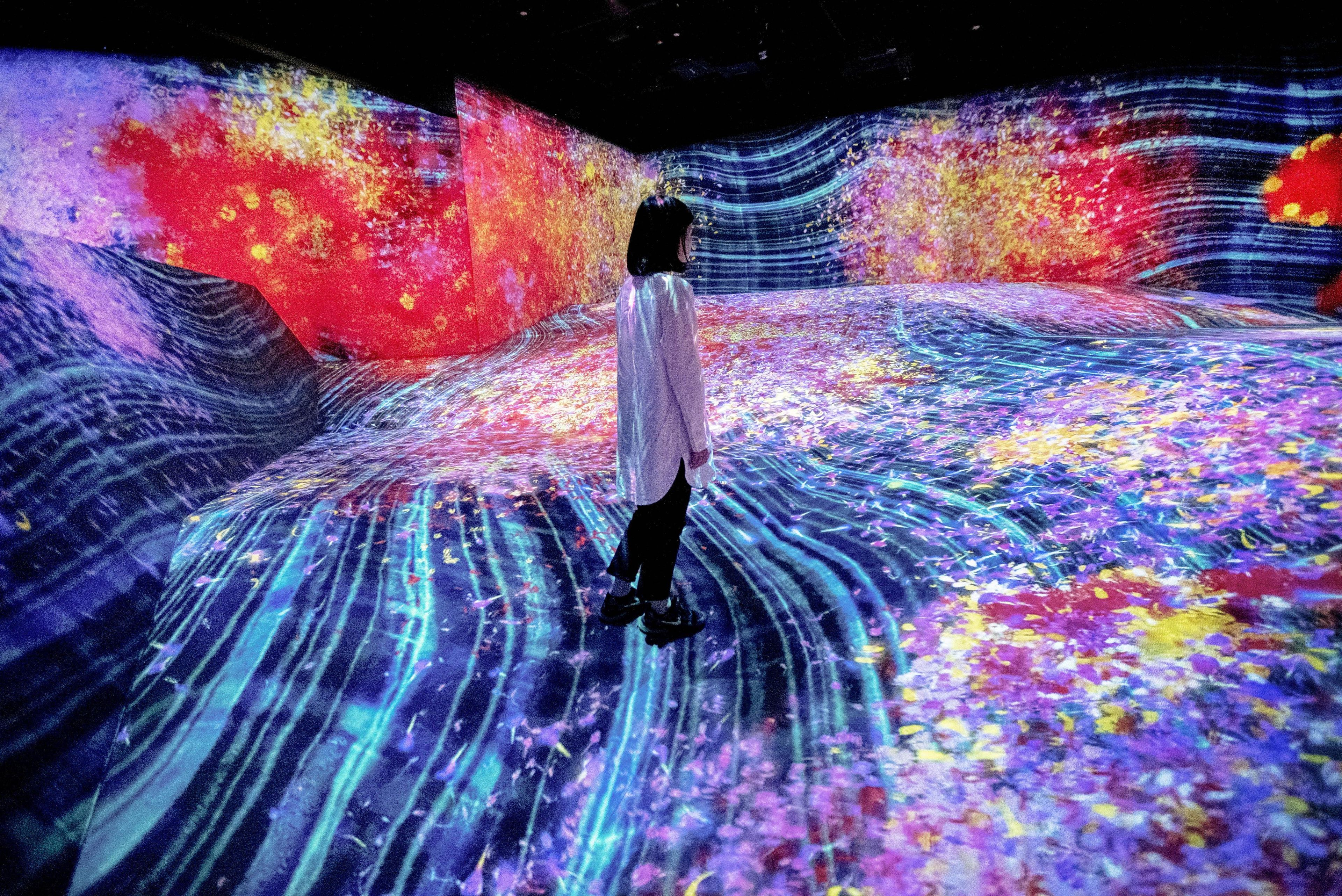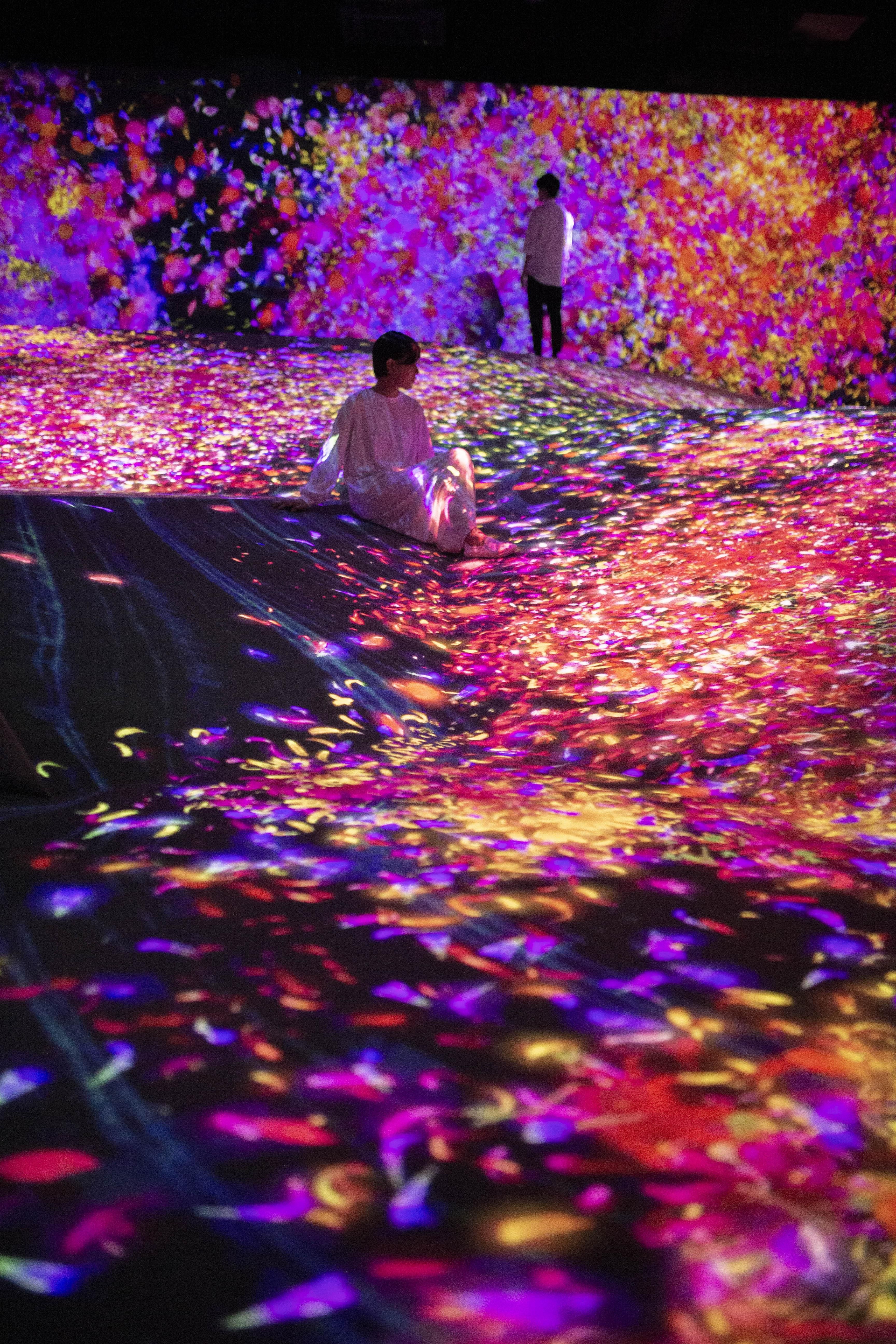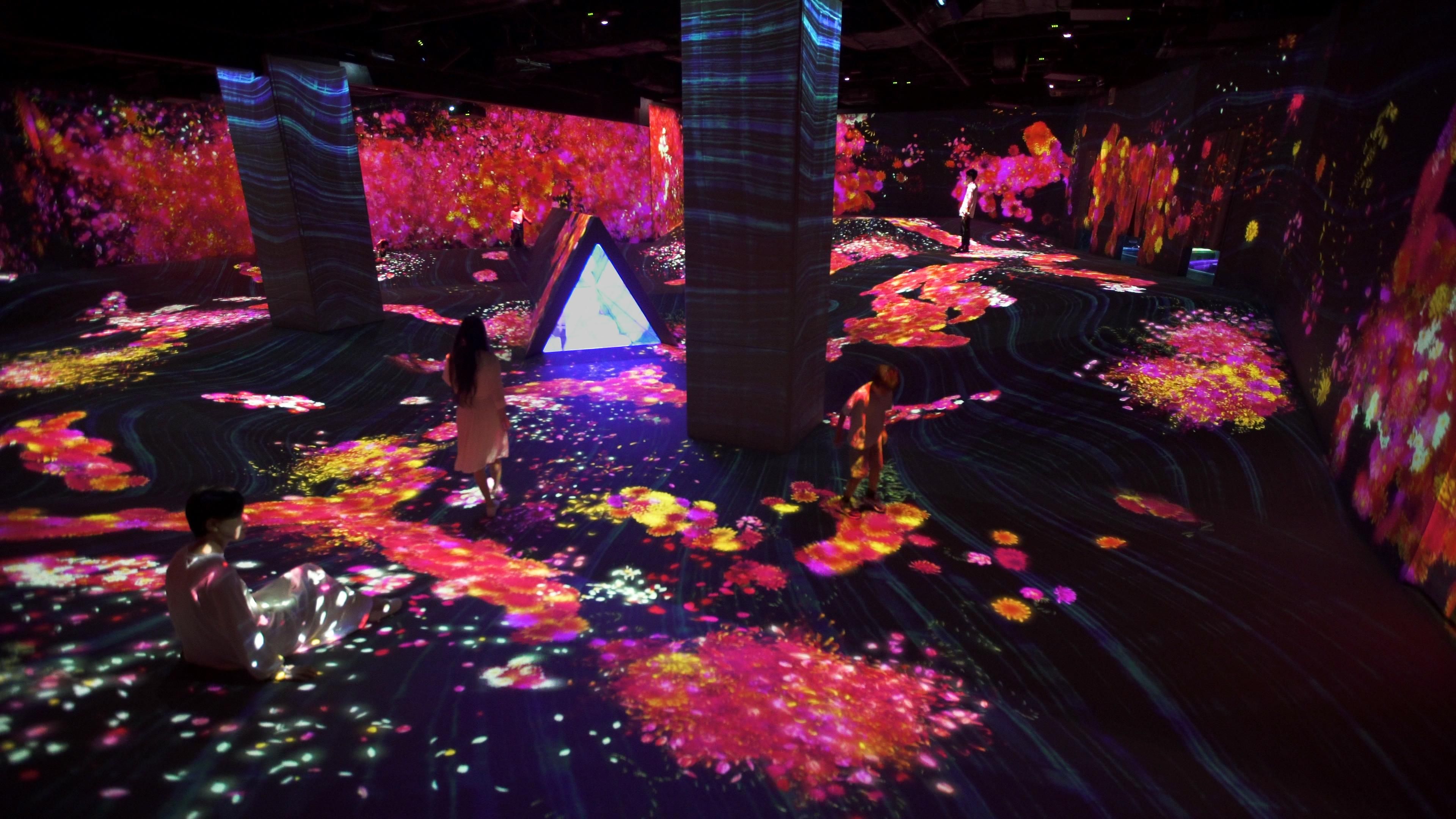 作品不是将预先制作好的影像进行放映,而是通过电脑程序实时绘制而成的。整体来说,作品的图像并非复制以前的状态,而是受到人们行为举止的影响,持续发生变化。眼前这一瞬间的画面,错过就无法再看到了。
