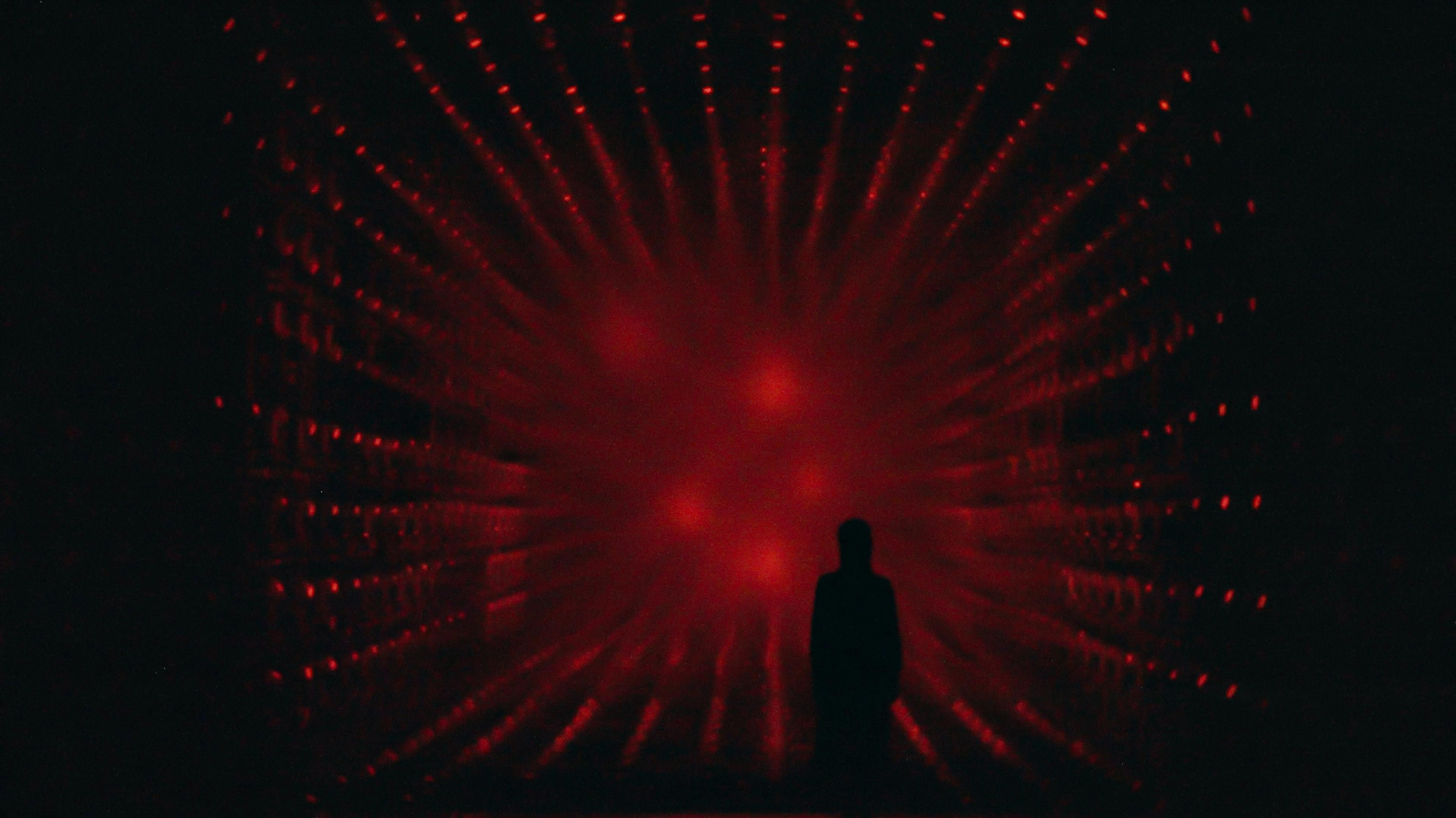 A sculpture made of ordered light that continues to flow outward.