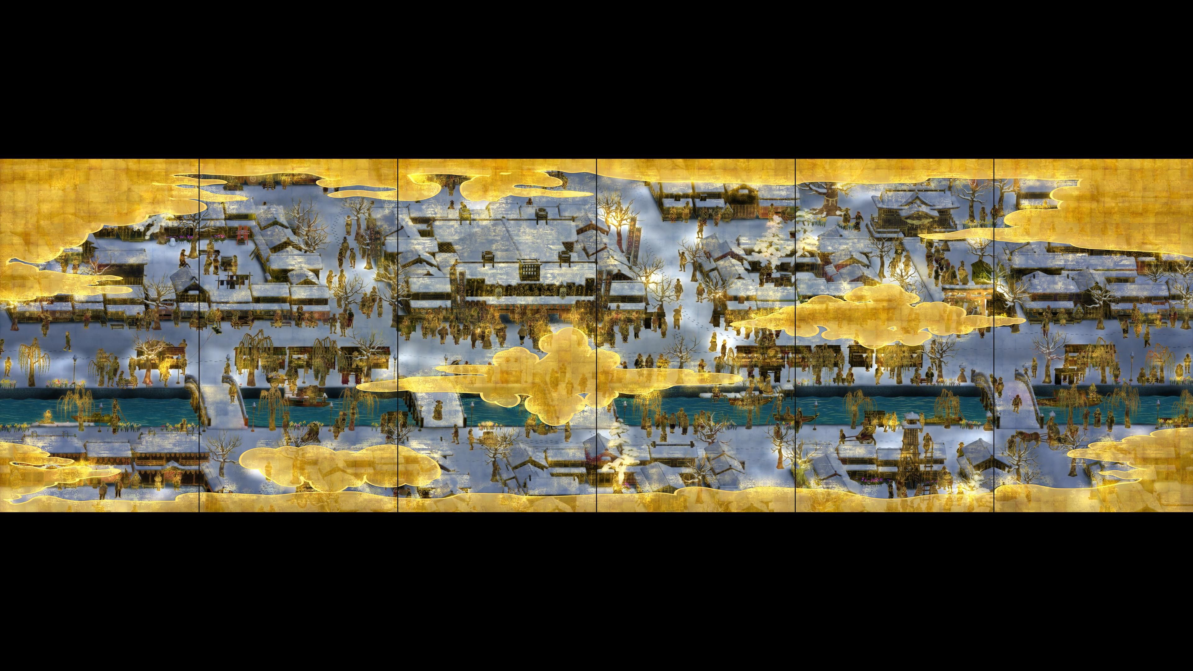 The actions of viewers influence the world of the artwork. The people in the artwork respond when a viewer touches them, but if the interaction is limited, they return to their daily lives.