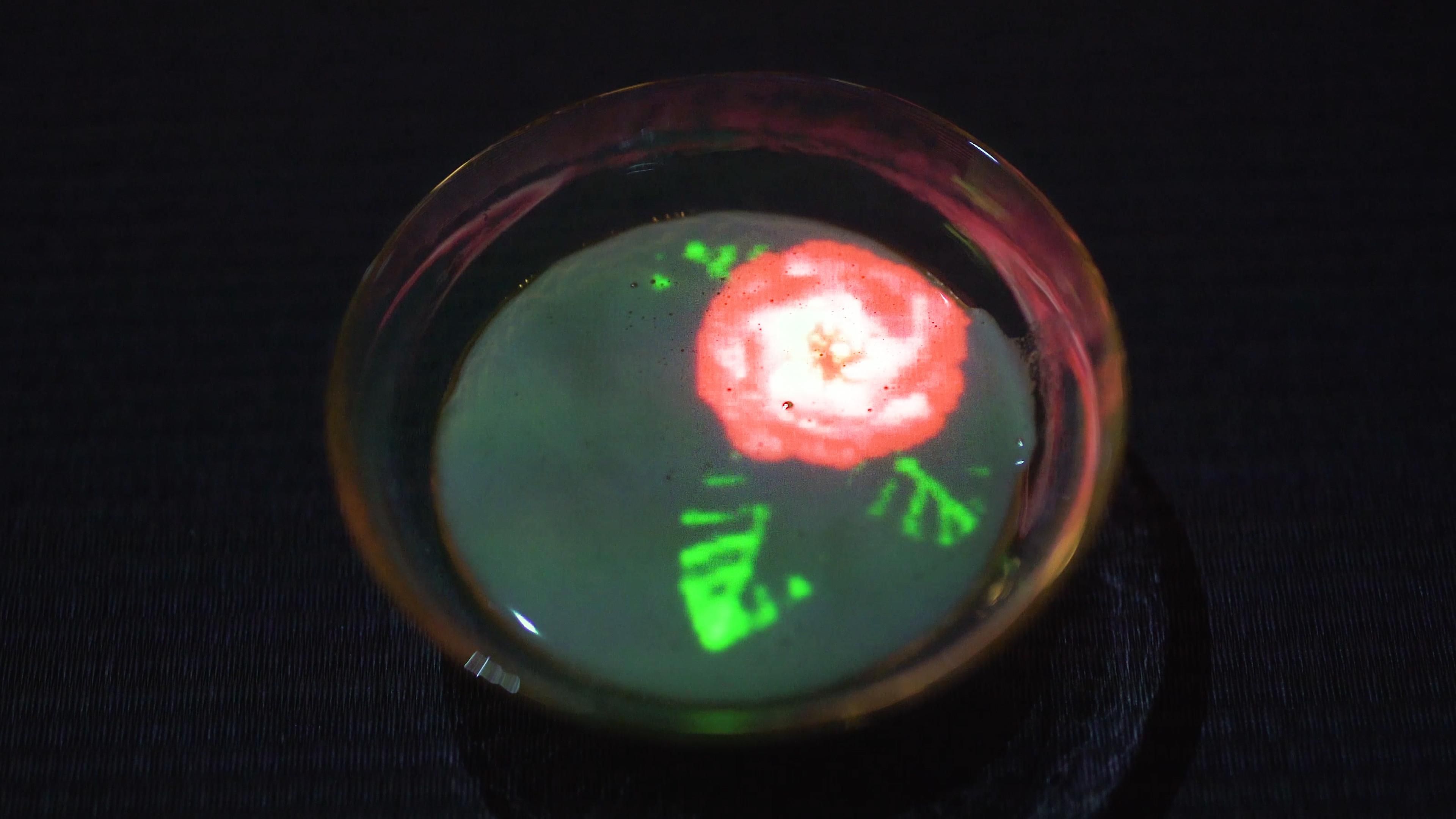 茶是一種容易變化的存在,根據茶碗中茶水量的不同,茶水面積大小也會不斷改變。配合著這個變化,所誕生花朵的大小也會跟著改變。當茶水從茶碗之中濺灑而出時,該處也同樣會綻開花朵。