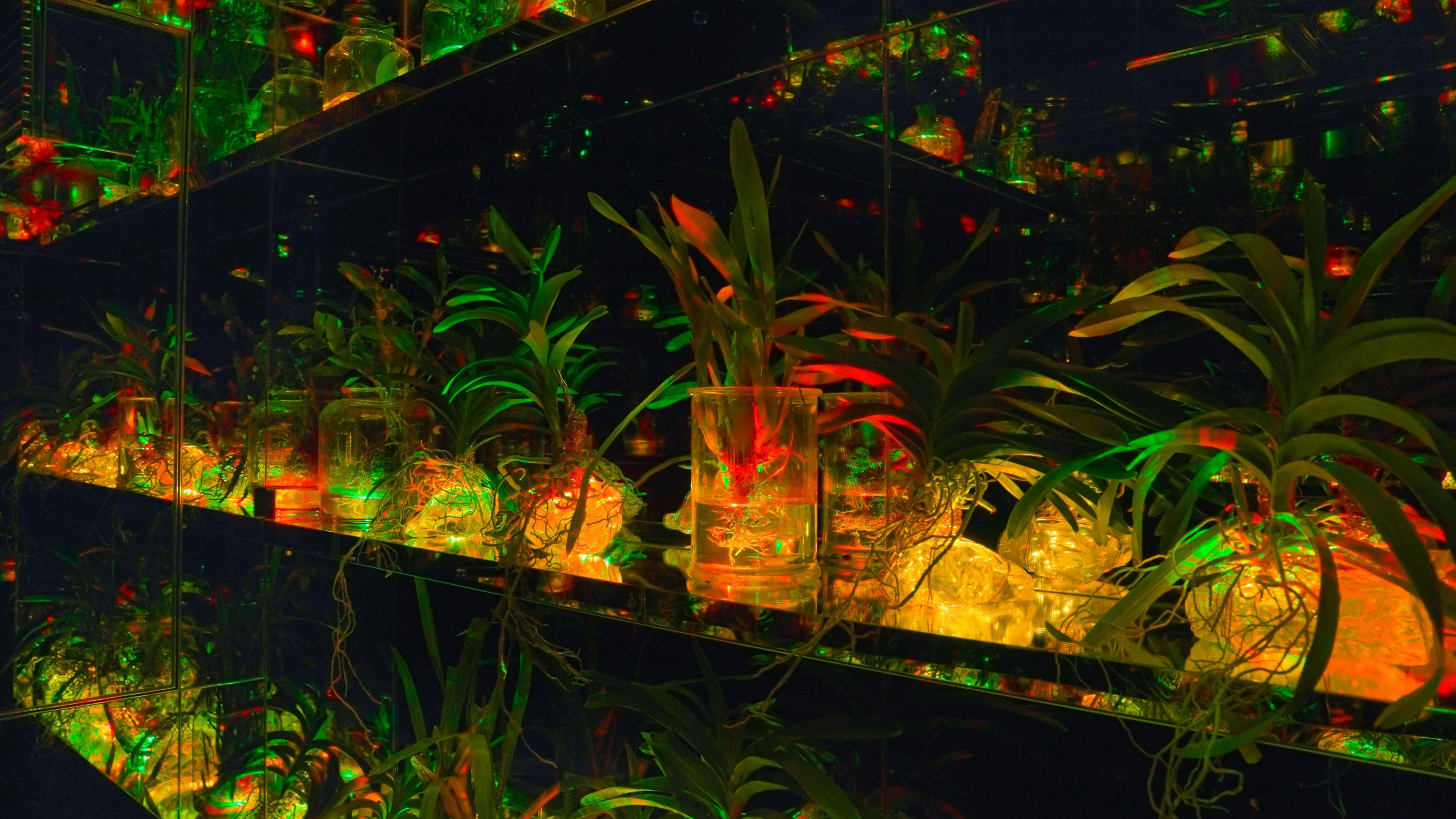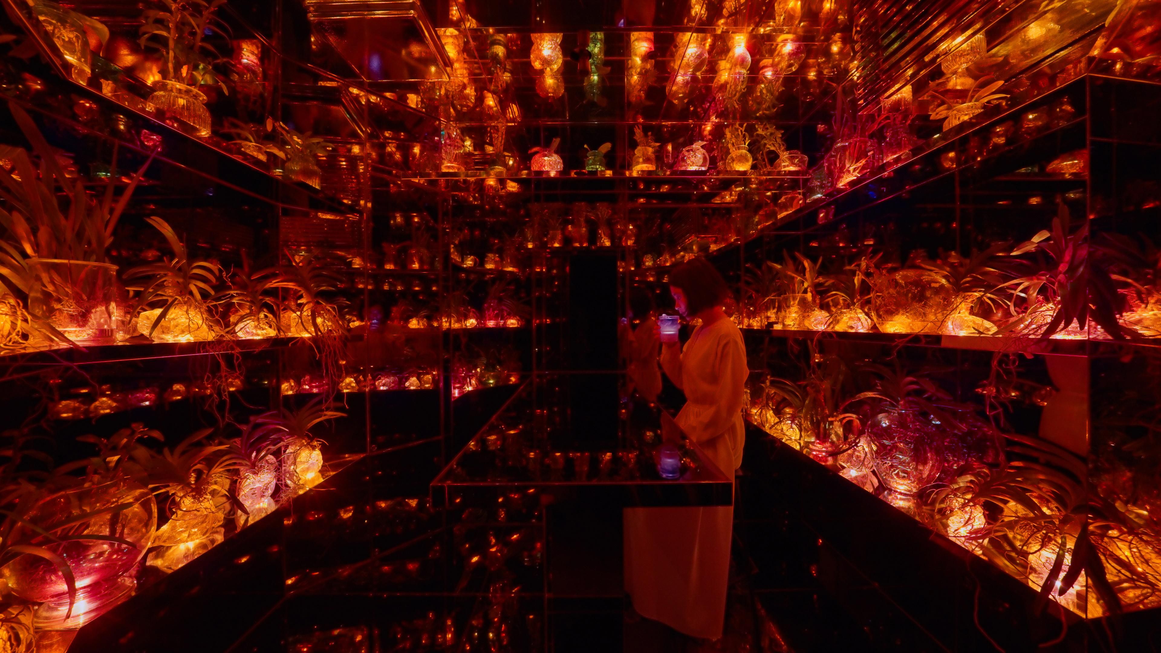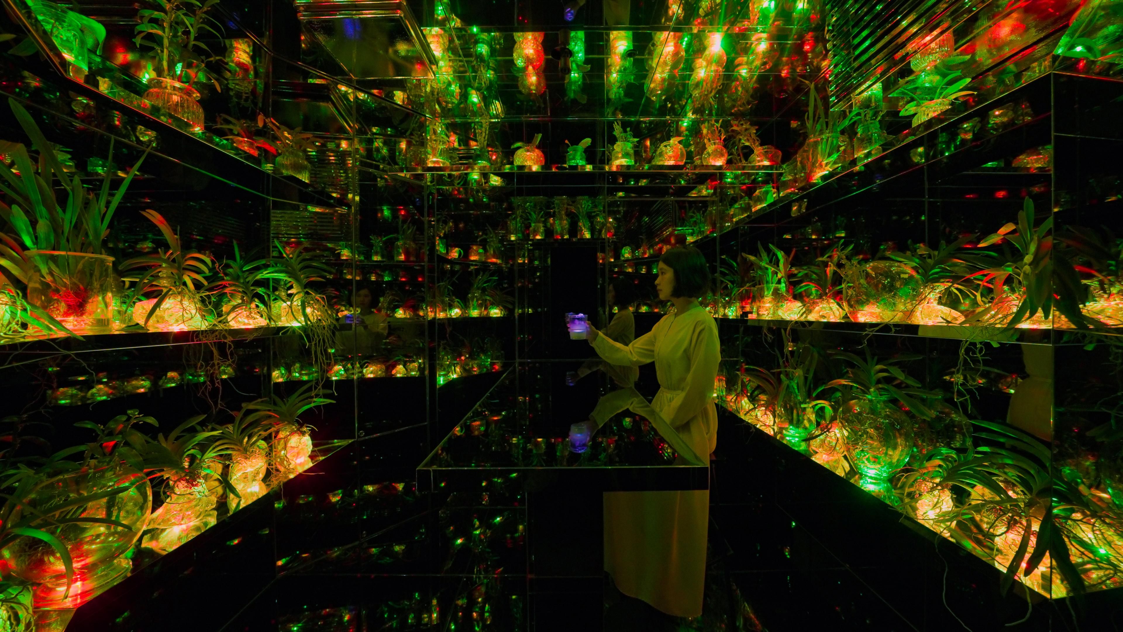 在“Floating Flower Garden”的蘭花凋謝後再次培育的空間裡飲茶喝酒。