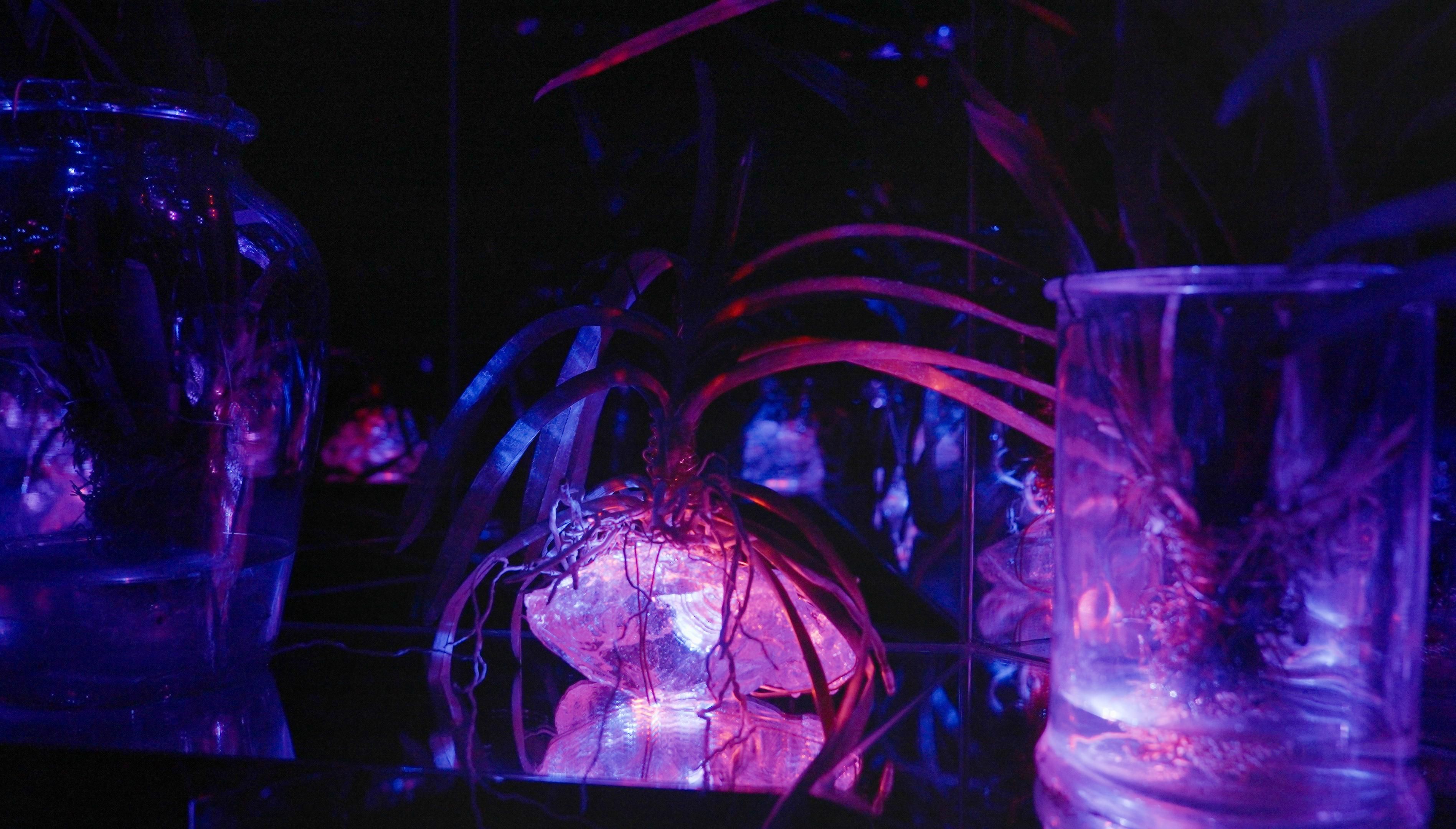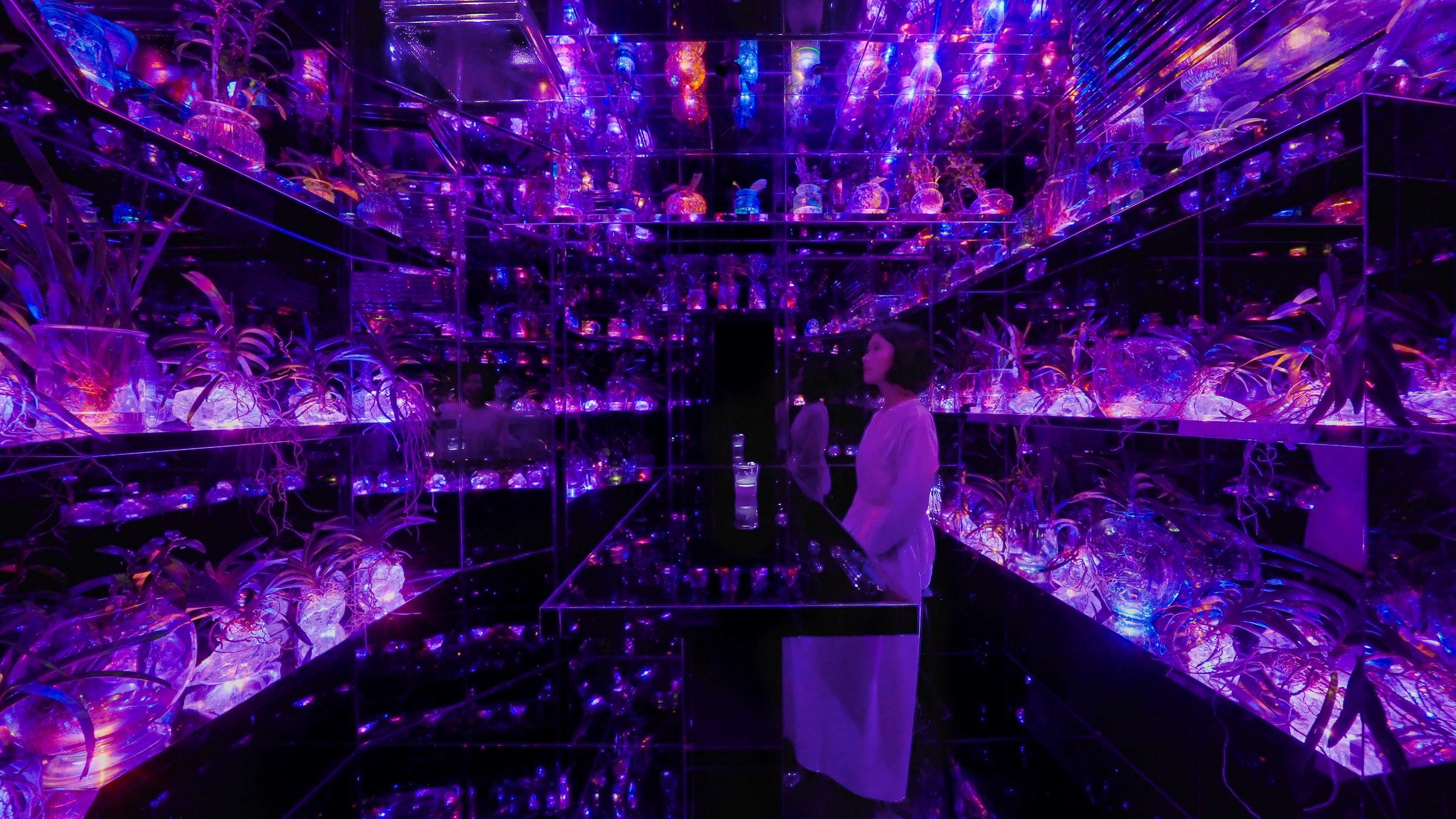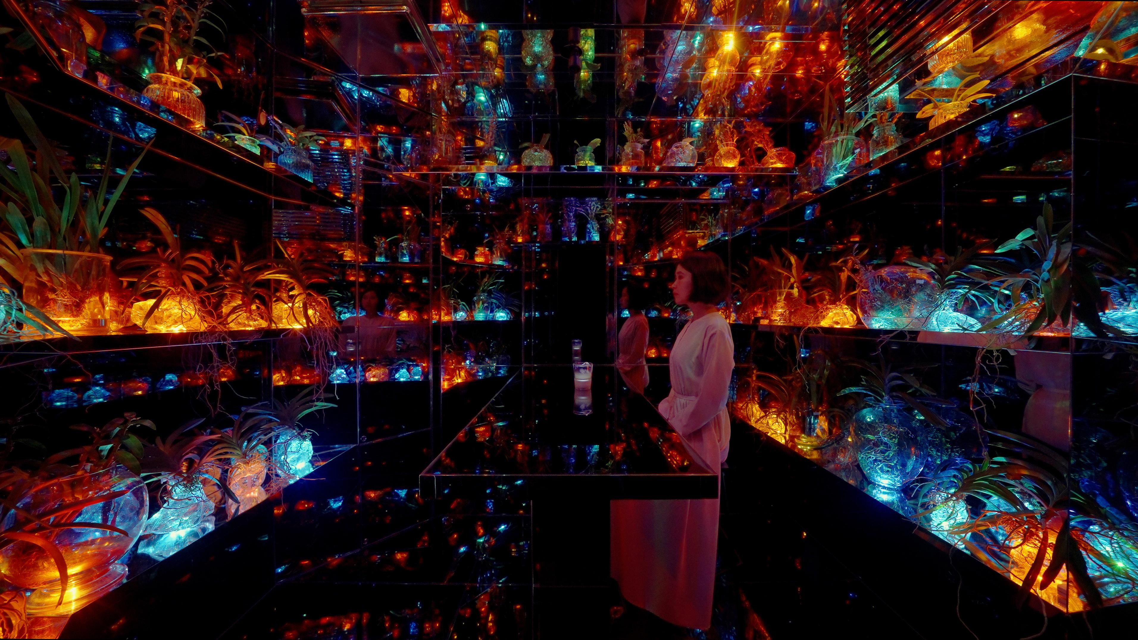 在“Floating Flower Garden”的蘭花凋謝後再次培育的空間裡飲茶喝酒。