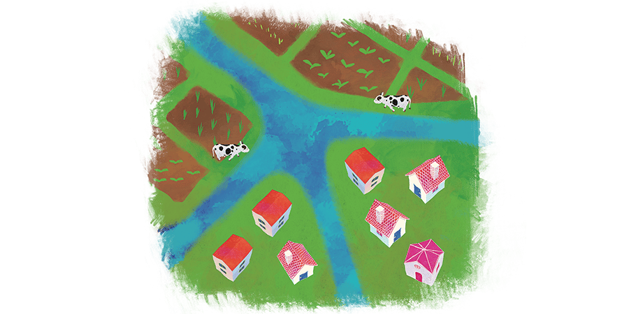 只要在氾濫的河流附近放置代表水池的積木,就能夠創造出水路,當把水路與海洋相連結後,就可以防止河水氾濫。