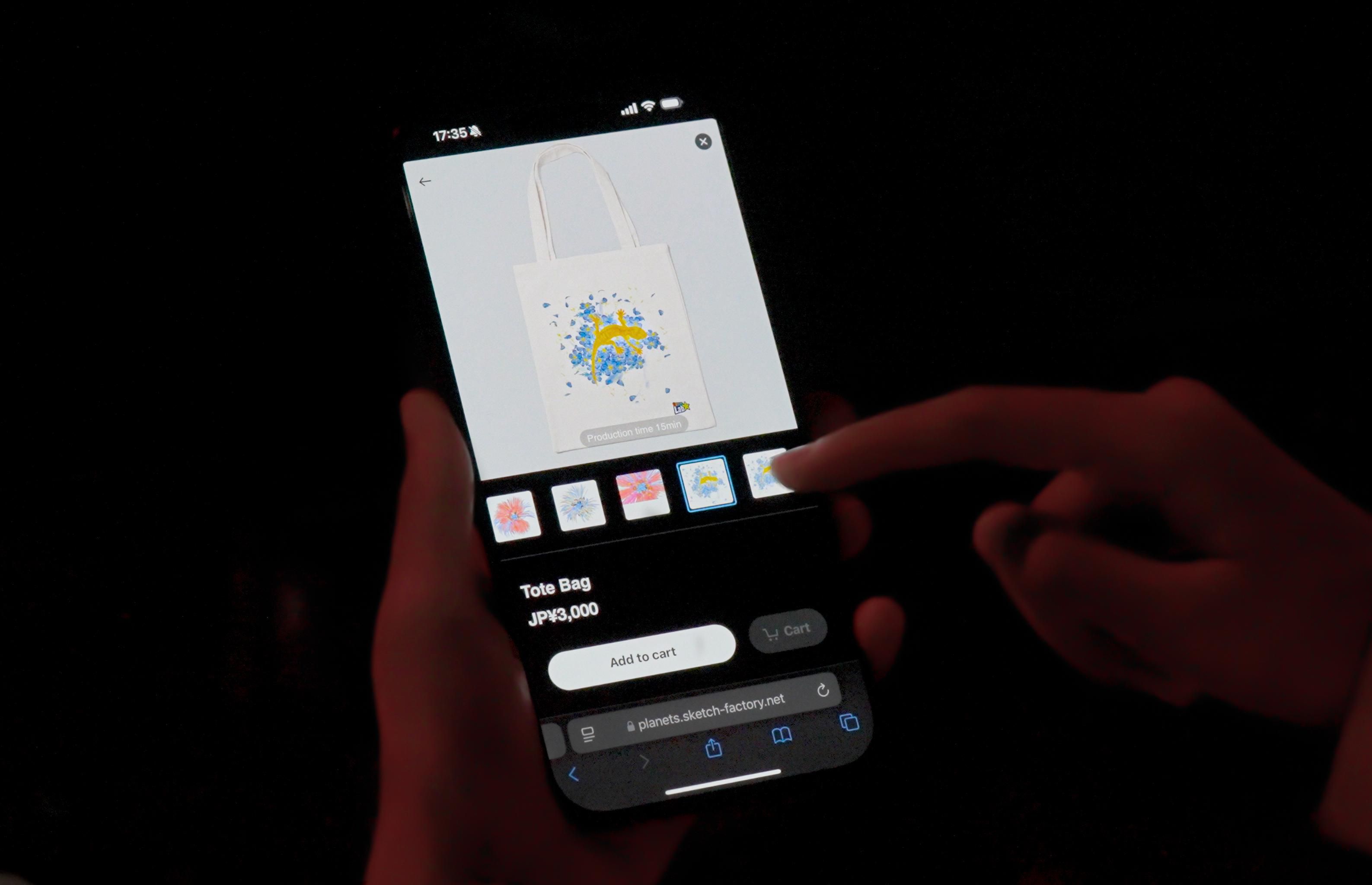 選擇您在《Graffiti Nature》和《Sketch Umwelt World》描繪的生物,然後在《彩繪工廠》下訂單。接着,您所繪製的生物會在《彩繪工廠》內出現並開始活動。當生物進入機器後,就會開始製作,最終形成徽章、手巾,T恤、單肩包和紙製工藝品。