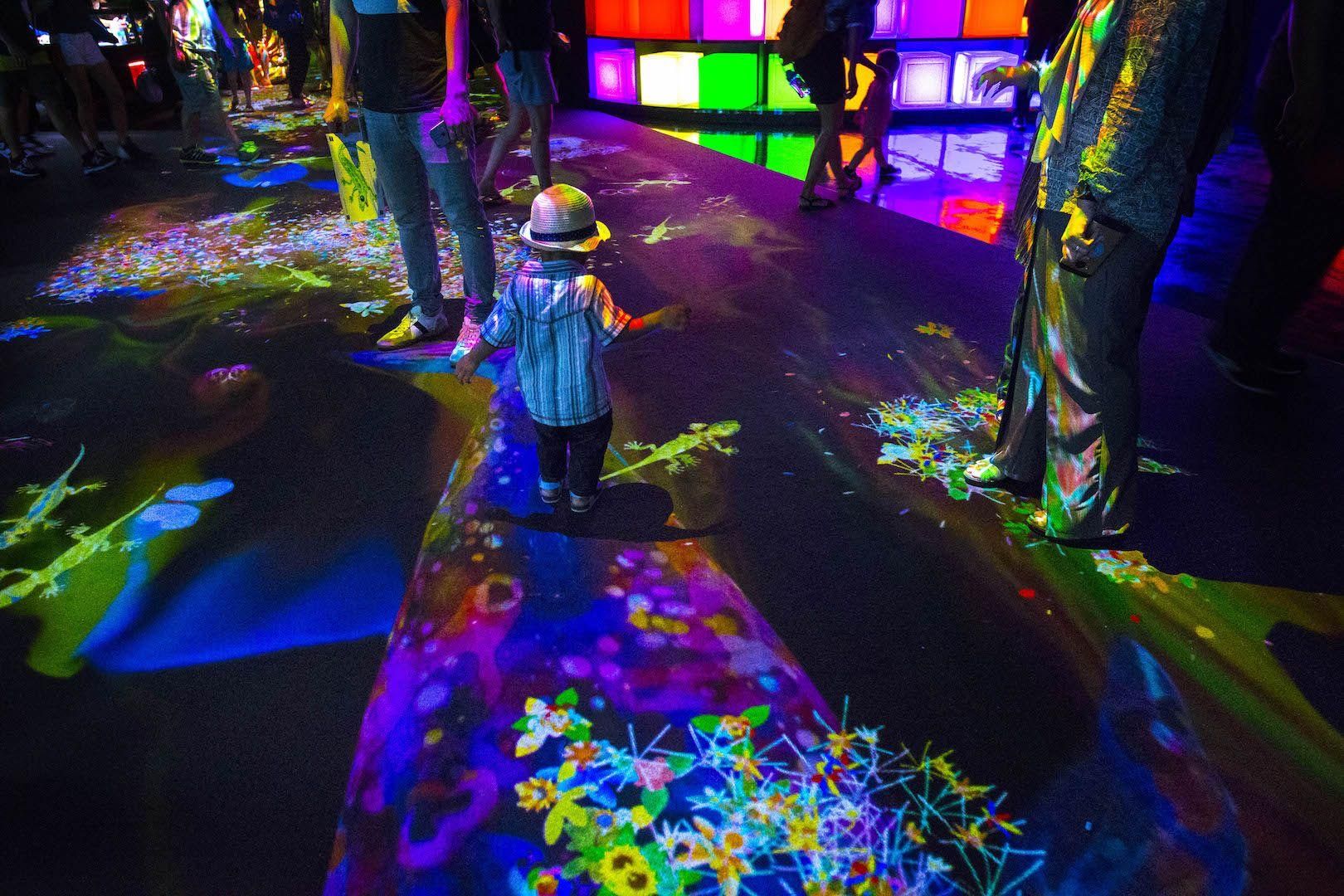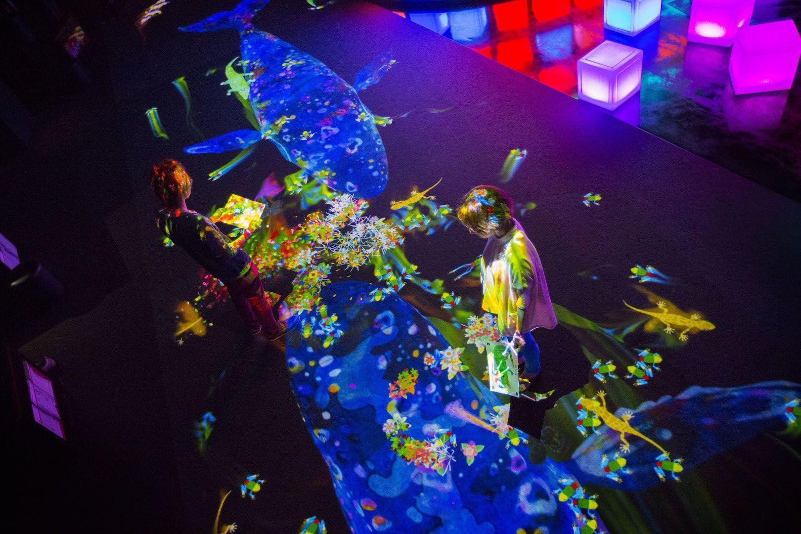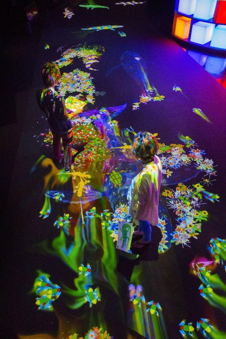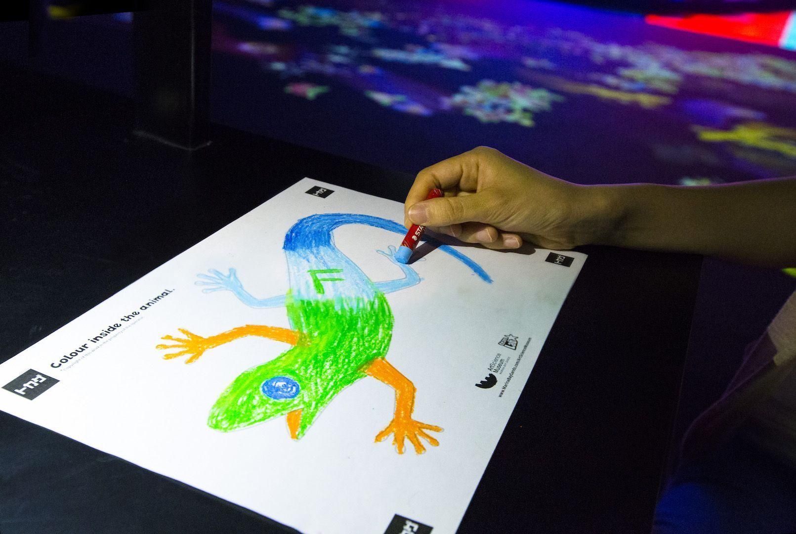 大家一起描繪出各種生物,棲息在有高低落差巨大的斜坡上打造出的立體空間裡。在紙上繪畫出生物,描繪下的生物仿佛被注入生命,出現在眼前。