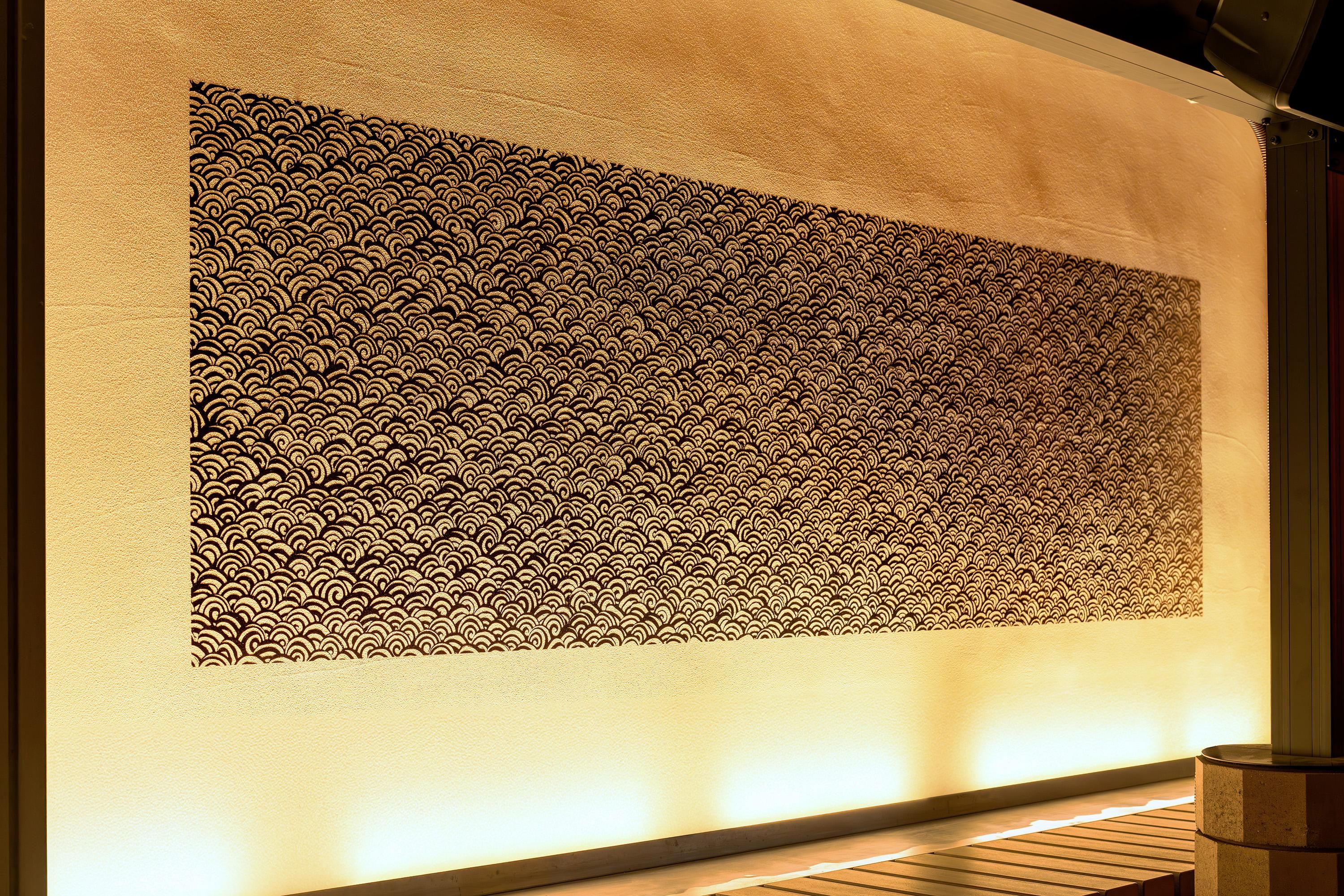 青海波紋樣是日本傳統的,包含着「無限延伸的平穩波浪的圖案,表達了對於廣闊的海洋所帶來的恩惠的感謝,以及永遠持續和平生活的嚮往」意義的圖案。青海波紋樣始於“波斯薩珊朝(226-651年)”,通過絲綢之路傳到中國,在飛鳥時代(593-710年)傳播到了日本。