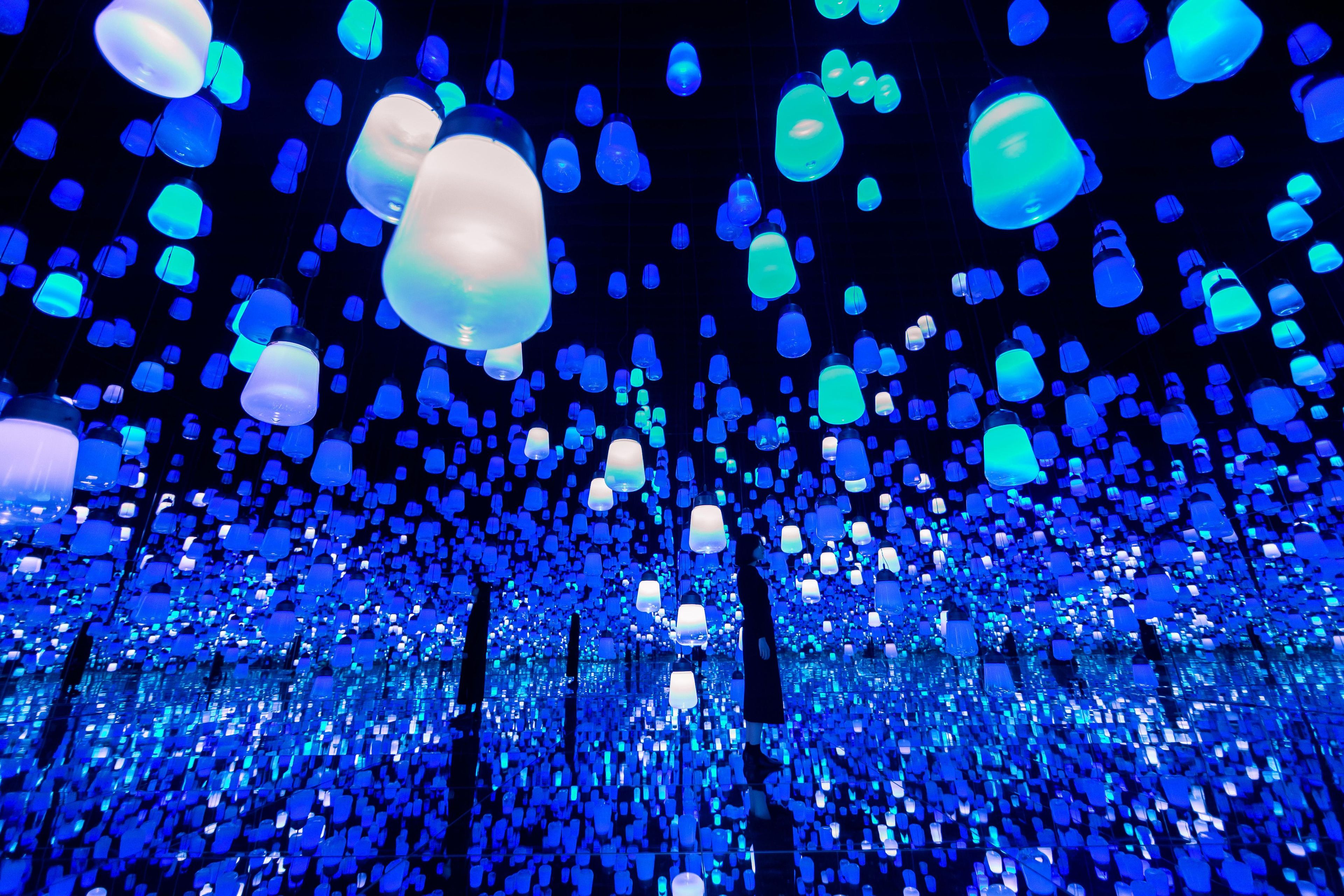 teamLab, 2018, Interactive Installation, Murano Glass, LED, Endless, Sound: Hideaki Takahashi, Production Support: Hirohito Saito (OryZa Design), Shinya Yoshida (SYD INC.)