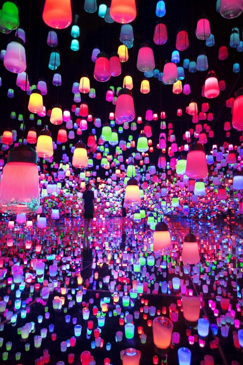 This is the Forest Of Resonating Lamps, an art installation created by TEAMLAB featuring a bunch of individually color-controllable hanging lamps in a mirrored room. It’s like you’re right in the middle of a technicolor paper lantern festival.(本文抜粋)