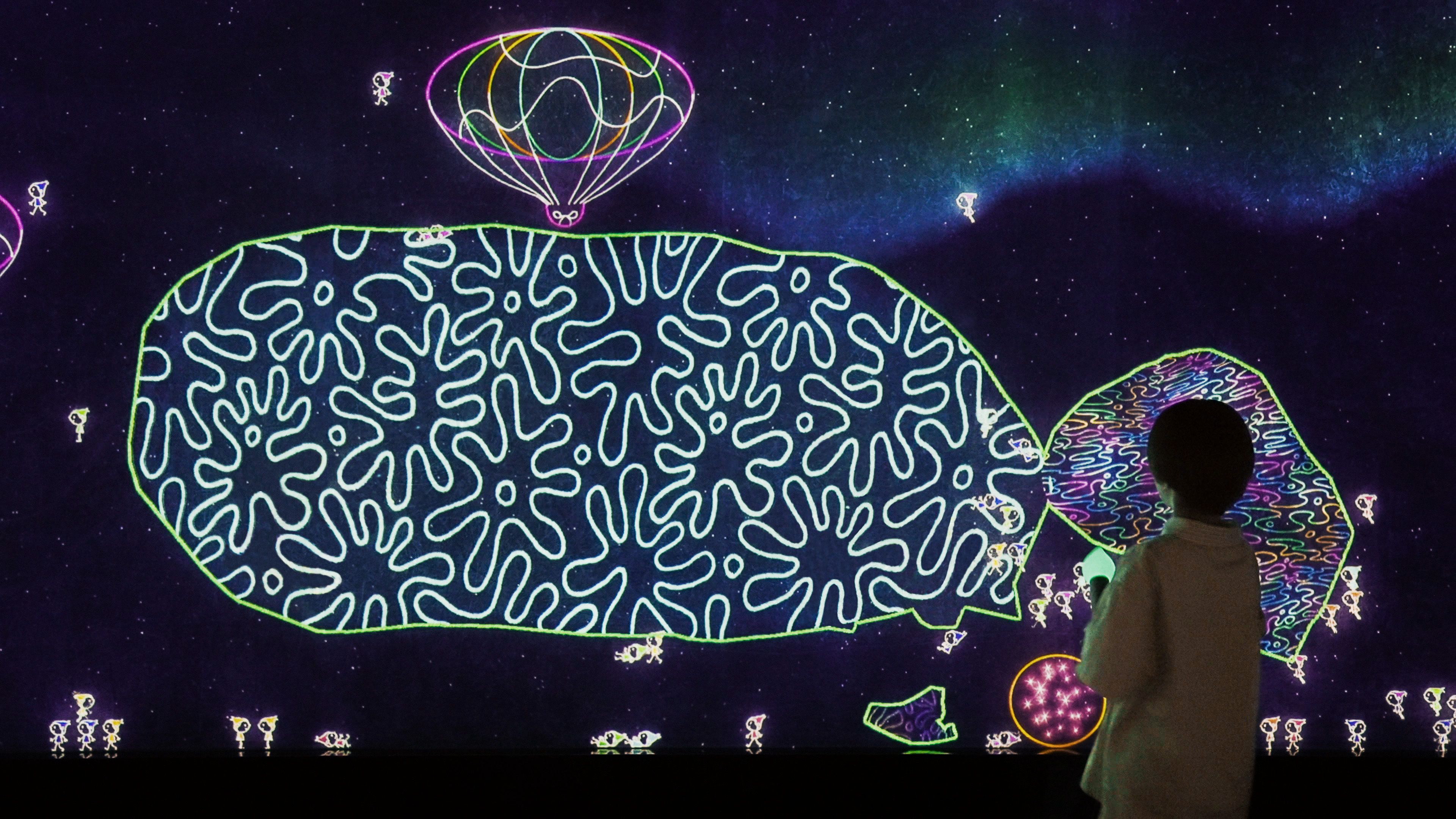 如果你和周圍的人一起畫一幅大的圖畫或蓋下許多印章,就會賦予小人兒們描繪新世界的各種力量,小人兒們也會游戲得更果敢。