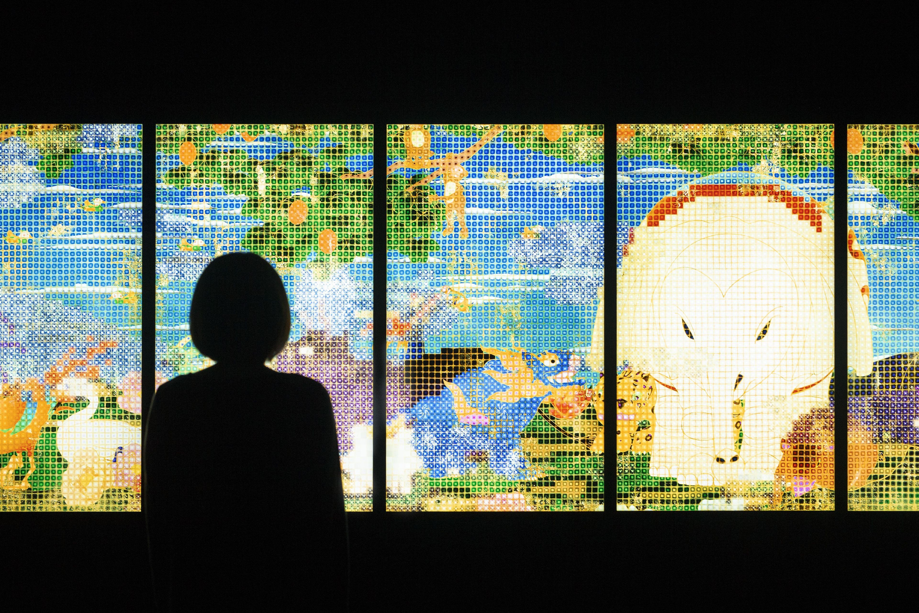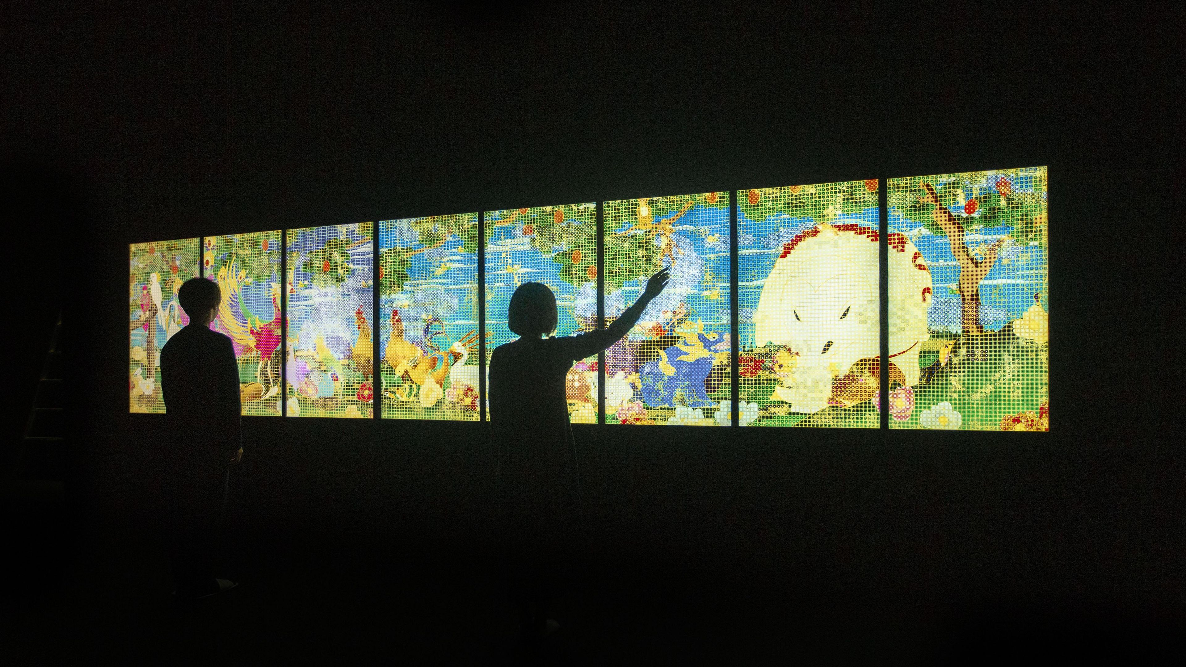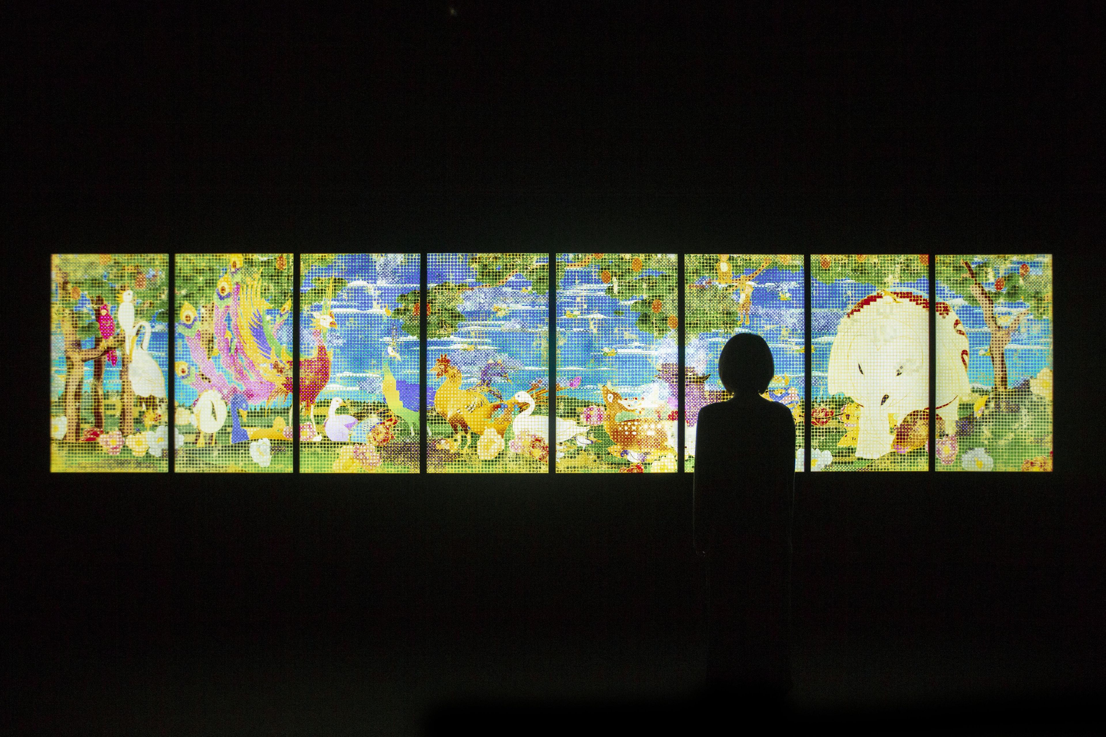 伊藤若沖(Jakuchu Ito,1716-1800)是日本早期現代畫家,江戶中期活躍於京都。他的繪畫風格獨特,作品表面由成千上萬個色彩各異的方塊組成。 《涅槃》(Nirvana)的創作靈感源於屏畫《鳥》、《動物》、《開花植物和樹》、《花》以及《鳥和動物》。